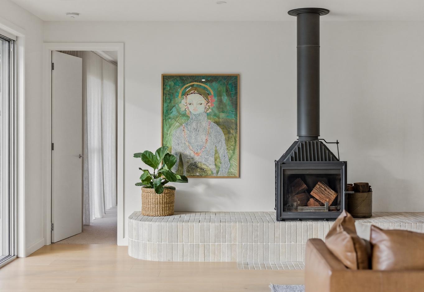 Bryce’s favourite feature is the eight-metre stone bench paired with the freestanding fireplace. The natural stone is something people comment on all the time, and when we’re entertaining it often becomes extra seating for guests. It’s definitely a feature that always sparks conversation.