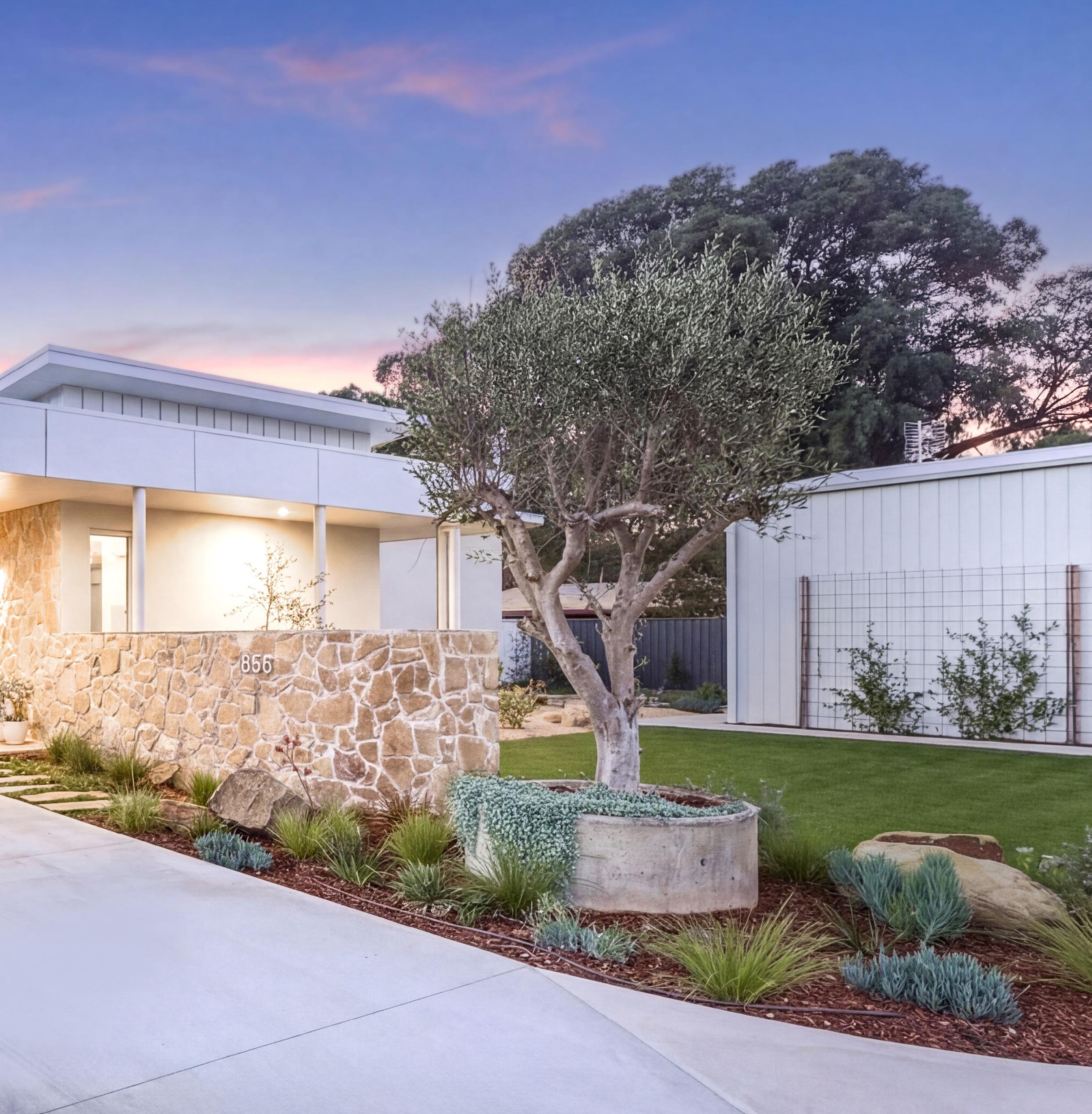 For us, we love a cosy winter Friday night with the fireplace going, a glass of wine in hand, and the footy on TV. But one thing that really surprised us after moving in is the way the afternoon sun hits the landscape. The large gum trees behind the property look incredible when the sun sets on them. It creates such a beautiful and peaceful backdrop.