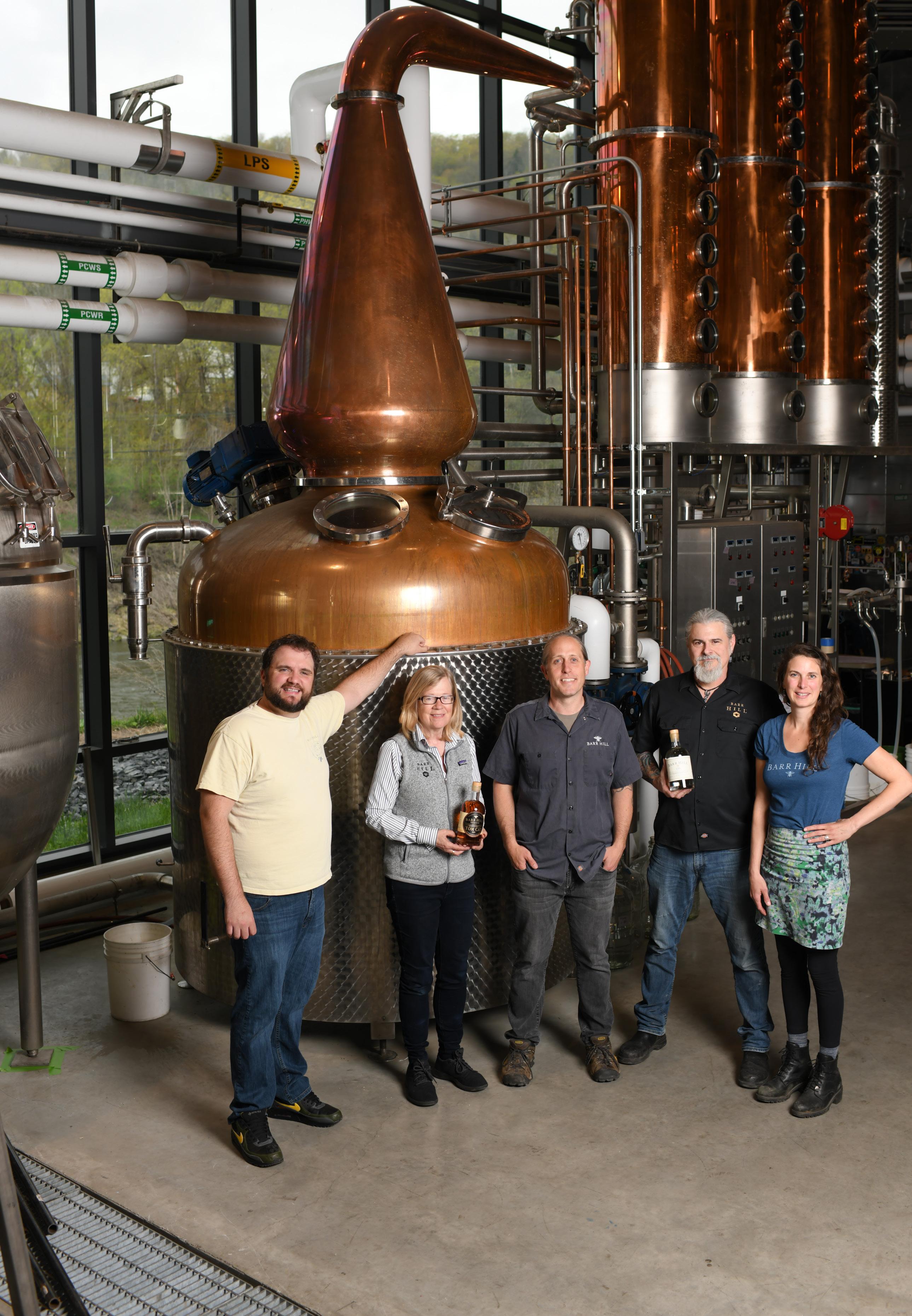 The leadership team at Caledonia Spirits from left to right: Patrick Amice, Minty Conant, Ryan Christiansen, Scott Emery and Sophia Barsalow