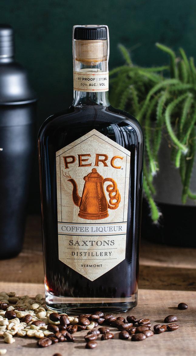 the market that was authentic and real,” he says. It took some time to figure out the right beans and process. “Working with real coffee isn’t that simple,” he says, “What makes a good coffee doesn’t always make a good liqueur.” Perc is made with Peruvian beans that are roasted locally by Mocha Joes in Brattleboro.