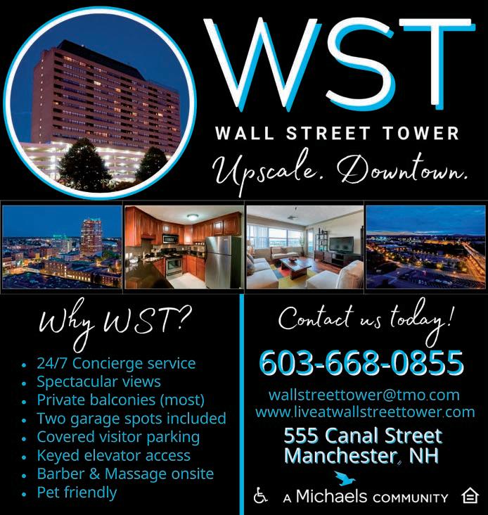 Wall Street Tower (ad on pg. 11) 555 Canal St., Manchester; (603) 668-0855 www.liveatwallstreettower.com
