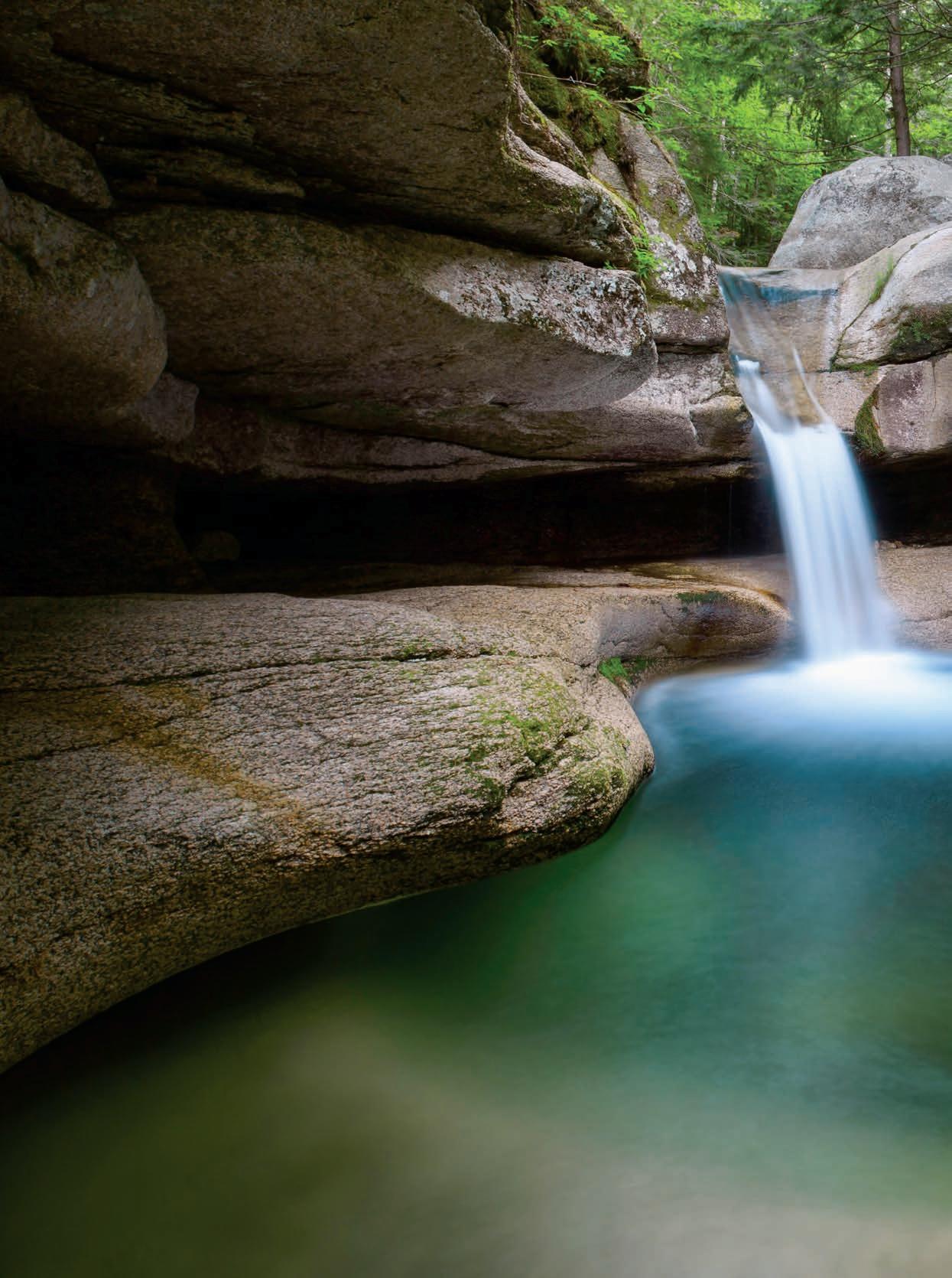 Spring sunlight brings the pools at Sabbaday Falls to life.