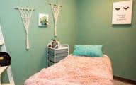 “The downstairs is our donation center and a small food pantry that also has personal hygiene items,” says Maggie Martin, with a nod to Carrie Wieland, who runs the center. “We have a washer and dryer there for use. The second floor has a makeshift apartment, with a young client living there. The second-floor bathroom has a shower that we open up for people who are living in their vehicles or a tent or just don’t have hot water. We provide towels and personal hygiene supplies. The third floor has an apartment for a mom who’s had a lot of struggles but now has been able to reconnect with her 10-year-old son and they’re rebuilding their relationship.”