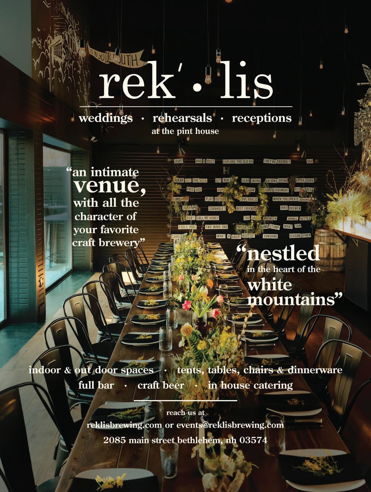 Rek-Lis Brewing Company | Contact for pricing 2085 Main St., Bethlehem 603-991-2357; reklisbrewing.com
