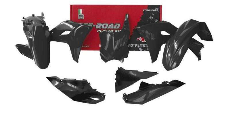• The five piece kit includes front and rear fender/guard, radiator shrouds, rear side panels, front race plate and airbox cover, with fork guards added into the six piece kit