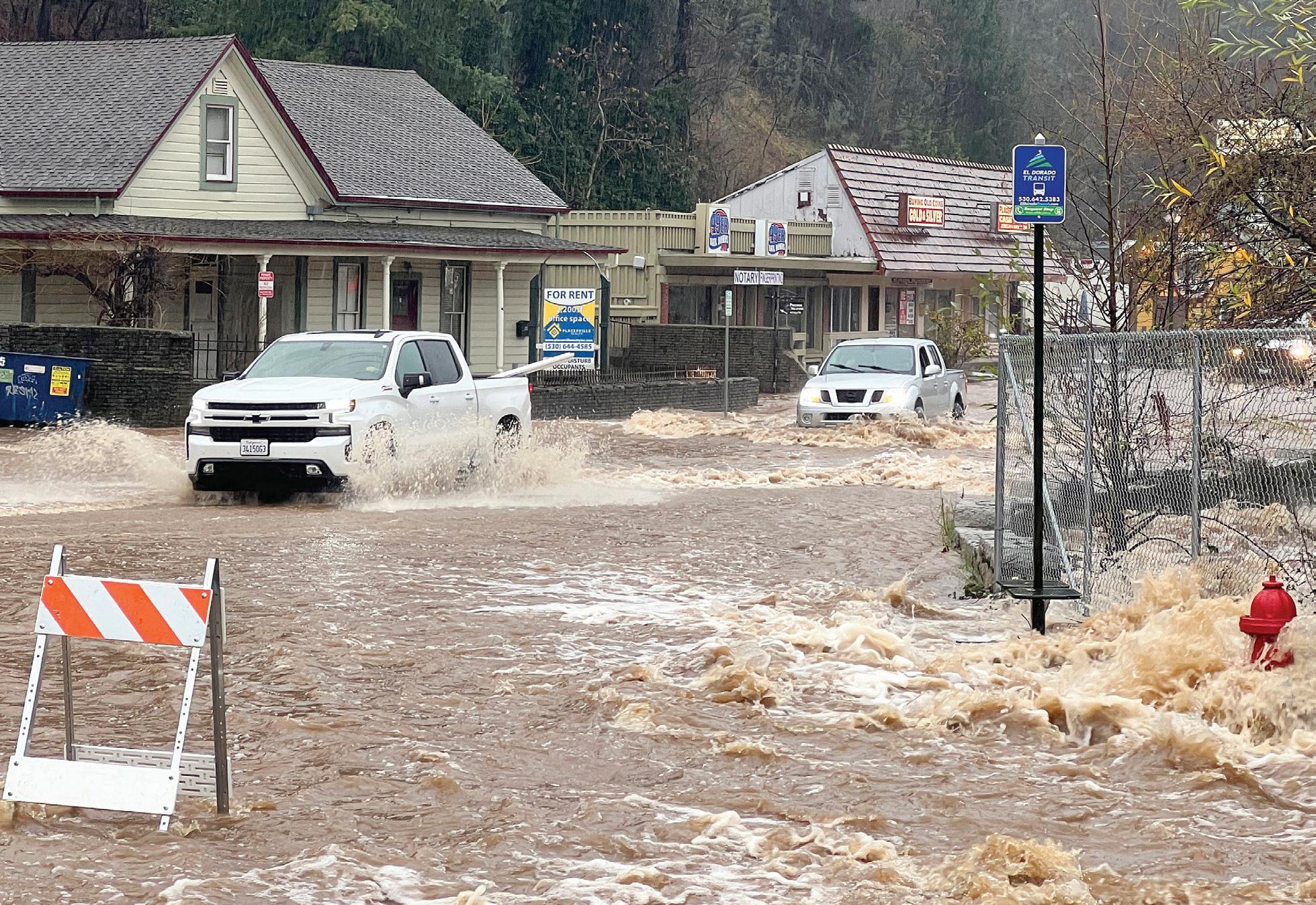 Placerville’s Main Street saw multiple instances of flooding, including near Motherlode Board Supply Company