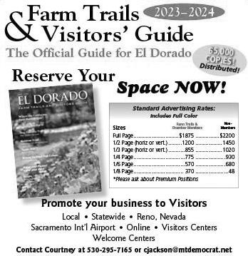 Have a gardening question? Master Gardeners are working hard to answer your questions. Use the “Ask a Master Gardener” option on mgeldorado. ucanr.edu or leave a message on the office telephone at (530) 621-5512. To sign up for notices and newsletters visit ucanr.edu/master gardener e-news. Master Gardeners are also on Facebook, Instagram and Pinterest.