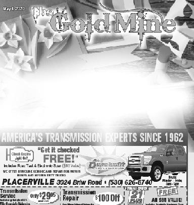 Elder Options, Inc. Phone: (530) 626-6939 (800) 336-1709 Sacramento / El Dorado Hills / Folsom Phone: (916) 391-8083 South Lake Tahoe Phone: (530) 541-1812 Our personalized care management, home care, respite and assisted living services are designed to ensure a safe, happy and fulfilling “every day.” elderoptionsca.com “A Life Lived Fully Every Day” Elder Options, Inc. Since 1988 We ’ve Moved! Open tO the public! Hours: M-F 8:30-5pm Sat 9-1pm 4600 Missouri Flat Rd. Placerville • (530) 622-2640 Orchard & Vineyard SupplieS Water tanks 300-5,000 Gallon SizeS available! Weed Prevention is Fire Prevention Maintains strength for Years! super concentrate Makes over 200 Gallons Livestock & Deer Fencing! n ow i n s tock! Green Tree Stove PelletS Call for Pricing Licensed Insured 916-370-0651 Maggie’s House Cleaning Available for weekly, bi-weekly, monthly, & one time cleaning. Reliable, honest, and has over 20 years of experience. margaritalherrera@icloud.com Bus Lic #011716 References available upon request • Painting • Drywall • Carpentry • Flooring • Decks • Fencing • Plumbing • Electrical • Pressure Washing • Stucco • Cabinets Contact Mike (530) 906-7919 Reasonable Rates HANDYMAN SERVICE Residential/Commercial Unlicensed Contractor HandyMan Painting GARY C. TANKO WELL DRILLING, INC. CSL # 282501 Pump sales & service 30 years experience in the area (530) 622-2591 Well Drilling Window Coverings Weed Control Landscape Maintenance DaviD Santana (530) 306-8474 ProPerty Clearing Yard Clean-up • Maintenance Weedeating • Trimming Tree Pruning & Removal Free Estimates • Fully Insured Can now process mobile credit card payments. State Contr. Lic. 877808 Landscape Maintenance Landscaping Hauling And Cleaning Hauling & Clean ups — All Areas — Large & Small jobs! Mobilehome Removal Experts! (530) 409-5455 (916) 806-9741 Clean, polite service 7 dayS: 8aM-9pM Roofing • Tile Repair • Wood shake to composition conversions • Seamless Gutters • Real Estate Roof Inspections & Certs • Mobile Home Composition • Modified Bitumen One-Ply System • All Types of Repair Work Celebrating 25 Years in business! Lic. 649751 Since 1992 New Roofs • Re-Roofs • Repairs (530) 676-3511 www.eliteroofing.com Senior Discount Elite Roofing Elite Roofing Tree Service Plumbing • Residential & Commercial • Water Heater Specialist • All Pumping Repairs • Septic Pumping Services • Drain cleaning, repiping • Trenchless Pipe Replacement Dominic Stone — Owner www.domcoplumbing.com (916)934-2440 CL#828505 Immediate Response! INC. 24-Hour Emergency Service! 7 Days a Week We Charge By the Job, Not by the Hour Sprinklers Repair • Drip Systems Fence Repair • Clean Ups • & Hauling Bus. Lic. #053457 Insured Call today! (530) 558-0072 2014Rod.F@gmail.com Rodriguez Yard Maintenance LA COLINA LANDSCAPING Design • Installation • Hardscapes • Retaining Walls Renovations • Field Mowing • Weed Abatement Free Estimates 530.409.3485 lacolinalandscaping.com CSLB #721921 28 Years Experience Tree Removal Brush Clearing Tree Limbing 24 hour Emergency Services Free Estimates “We offer Grade-A quality service to our customers.” (530) 306-9613 Adam Rohrbough, Owner Operator Locally Owned • Pollock Pines Serving El Dorado County • Bus Lic 058736 CSLB 991861 Workers’ Comp Insured LTO A11207 DIAL-A-PRO ads are listings of local professionals in all trades. Call (530) 344-5028 to place your ad today! Premier Business Directory To advertise, call (530) 344-5028 (530) 647-1746 (530) 957-3322 (cell) JEFF IMBODEN CSL #840010 Commercial Residential Service Calls IMBODEN’S ELECTRIC Electrical Contractors Fire Services Construction CAMARA CONSTRUCTION GENERAL BUILDING CONTRACTORS Decks • Over Hangs • Arbors • Fences • New Construction Remodels, Painting, etc. • Full Design Services Available In-home inspection for new buyers. Don’t get cheated, make sure you’re getting what you’re paying for with an unbiased home inspection. John and Sarah Camara, Owners Placerville, California (530) 903-3045 www.placervilledeckbuilders.com Licensed, Bonded & Insured • Lic. #729819 Over 30 Years Experience “Speedy Service and Satisfaction, ALWAYS!” CC BAXTER’S PAINTING (530) 409-3980 Residential • Commercial Interior • Exterior Professional • Neat • Experienced Rated Finest Exteriors in El Dorado County 40 years experience Cal. St. Lic #388168 • Bonded • Fully Insured Painting Residential • Commercial Interior • Exterior Specializing in repaints Steven M artinez Owner • Operator Bus. # (530) 919-7612 (916) 530-7016 americaneaglepainting4@gmail.com Lic# 960086 Spring Specials American Eagle Painting Deck restorations, concrete staining & pressure washing Martin Harris 2000 Gallon Water Tender 530 277 9580 Cal Fire WC & rigged Phos Chek Retardant Brush Master Water Cannon. Construction site compaction & dust control Wildland Fire Services General Contractor Lic # B-710428 martinharris.us Martin Harris 2000 Gallon Water Tender 530 277 9580 Cal Fire WC & rigged Phos Chek Retardant Brush Master Cannon Construction site compaction & dust control support. General Contractor Lic# B-710428 Martin Harris 2000 Gallon Water Tender 530 277 9580 Cal Fire WC & rigged Phos Chek Retardant Brush Master Cannon Construction site compaction & dust control support. General Contractor Lic# B-710428 Martin Harris 2000 Gallon Water Tender 530 277 9580 Cal Fire WC & rigged Phos Chek Retardant Brush Master Cannon Construction site compaction & dust control support. General Contractor Lic# B-710428 Martin Harris 2000 Gallon Water Tender 530 277 9580 Cal Fire WC & rigged Phos Chek Retardant Brush Master Cannon Construction site compaction & dust control support. General Contractor Lic# B-710428 Martin Harris 2000 Gallon Water Tender 530 277 9580 Cal Fire WC & rigged Phos Chek Retardant Brush Master Cannon Construction site compaction & dust control support. General Contract