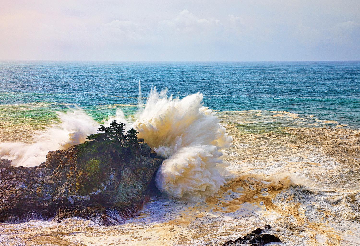 Clark is skilled at conveying the essence of a scene through her photography and this is what makes her work special. In “Big Sur Coast” she strives to contain all the grandeur of the California coastline that holds back the immensity of the Pacific, while nearby the “McWay Surf” pounds against the rocks with the violent and glorious energy and color of that wild coastline in a single frame. Her peaceful image of iconic “Haystack Rock,” nestled o the coast of Oregon, stands in silhouette against the dramatic backdrop of sunset over the Pacific.