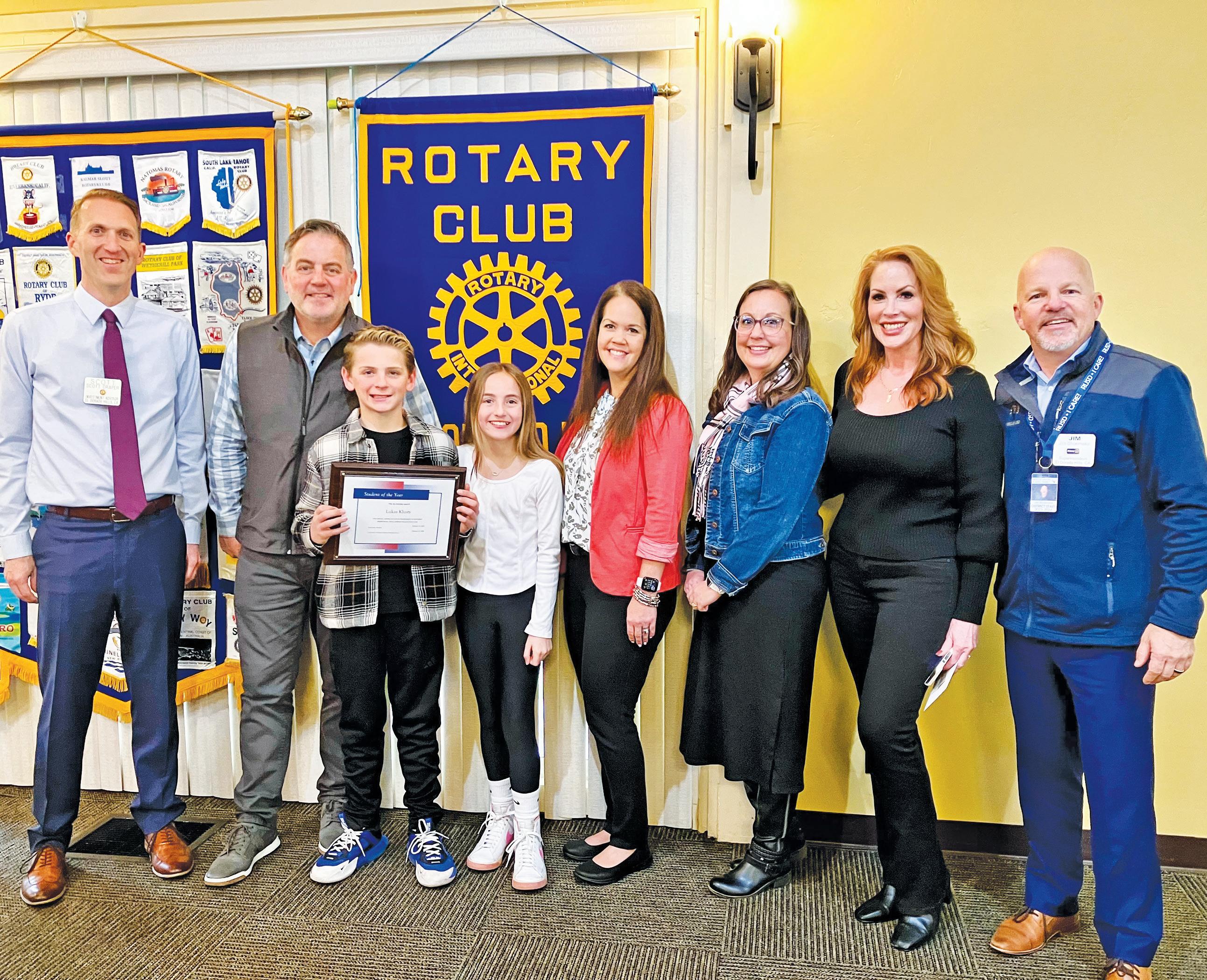 and local educators celebrated Lukas Klusty as the Lakeview Elementary School Student of the Year. Calling Lukas “the sweetest, kindest, most caring kid,” teacher Jenni Bazor teared up as she praised her hardworking student at Rotary’s Feb. 14 breakfast meeting.