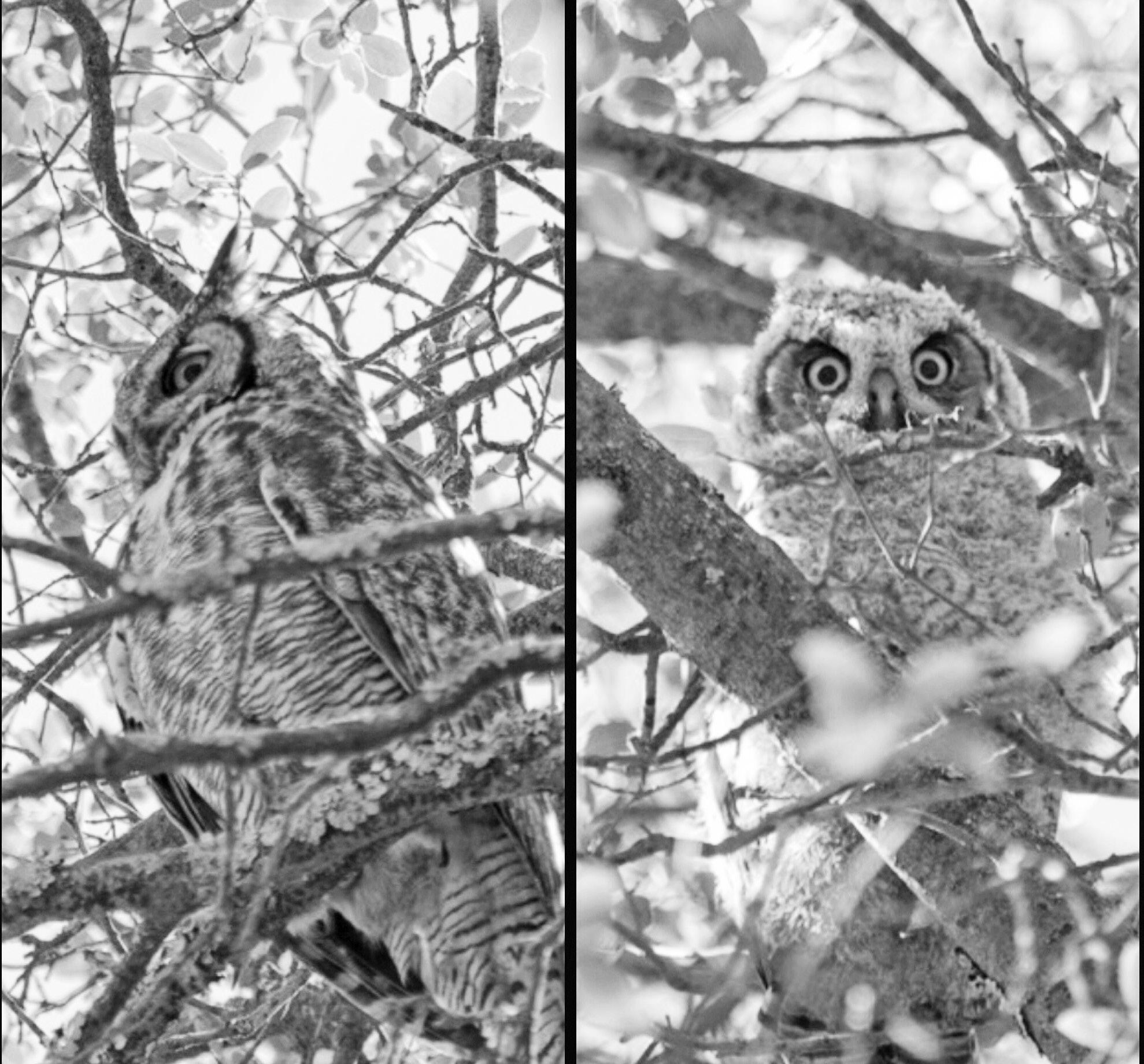 That’s the call of the fearless great horned owl, Bubo virginianus. As the most common of foothills owls, it’s 22-25 inches tall with a huge wingspan, yellow eyes and powerful talons. The horns are actually tufts of feathers that resemble ears. The feathers can be raised or lowered according to the owl’s mood. These head feathers act as camouflage, breaking the outline of the owl’s head from preys’ view.