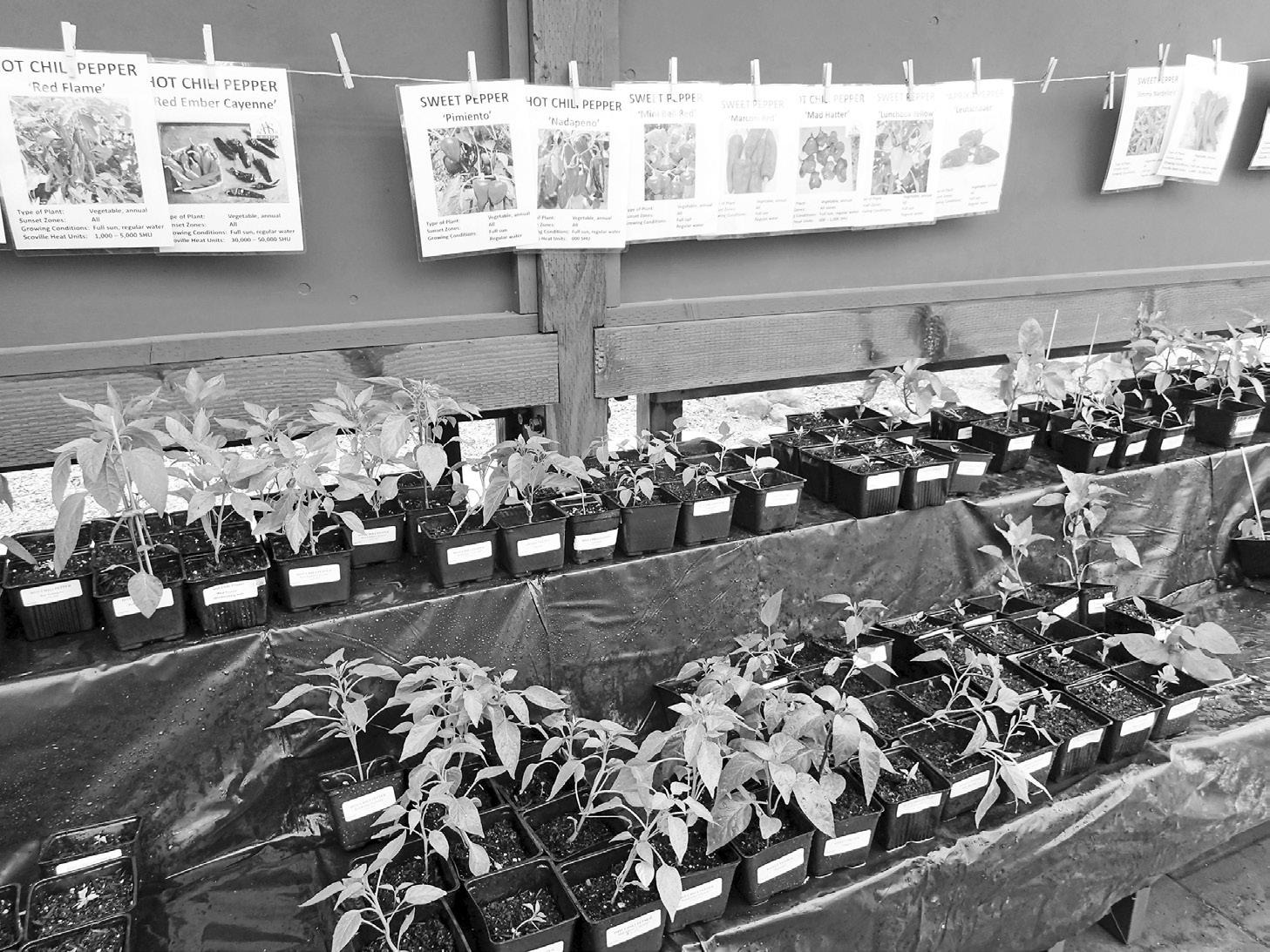 You can expect to find top quality herbs, vegetable and fruit offerings at the Edibles Sale. All plants have been grown locally with care by Master Gardeners. If you are looking for herbs to purchase, you will find anise, borage, chives, cumin, fennel, English lavender, chamomile, mint, basil (11 varieties), marjoram, oregano, parsley, sage, rosemary, tarragon, thyme, nasturtiums and scented geraniums. Tomatoes will also be featured, with cherry tomatoes (14 varieties), dwarf tomatoes (7 varieties), paste/plum tomatoes (10 varieties) and slicing tomatoes (35 varieties) to choose from. You will also find arugula, bloody dock, cardoon, eggplants (6 varieties), hot chili peppers (12 varieties), sweet peppers (13 varieties) and tomatillos available for sale. If fruit is on your list, you will find fig, strawberry, white strawberry, black mulberry, ground cherry and thornless blackberry plants. A complete inventory of the Edibles Sale plants is available at mgeldorado. ucanr.edu.