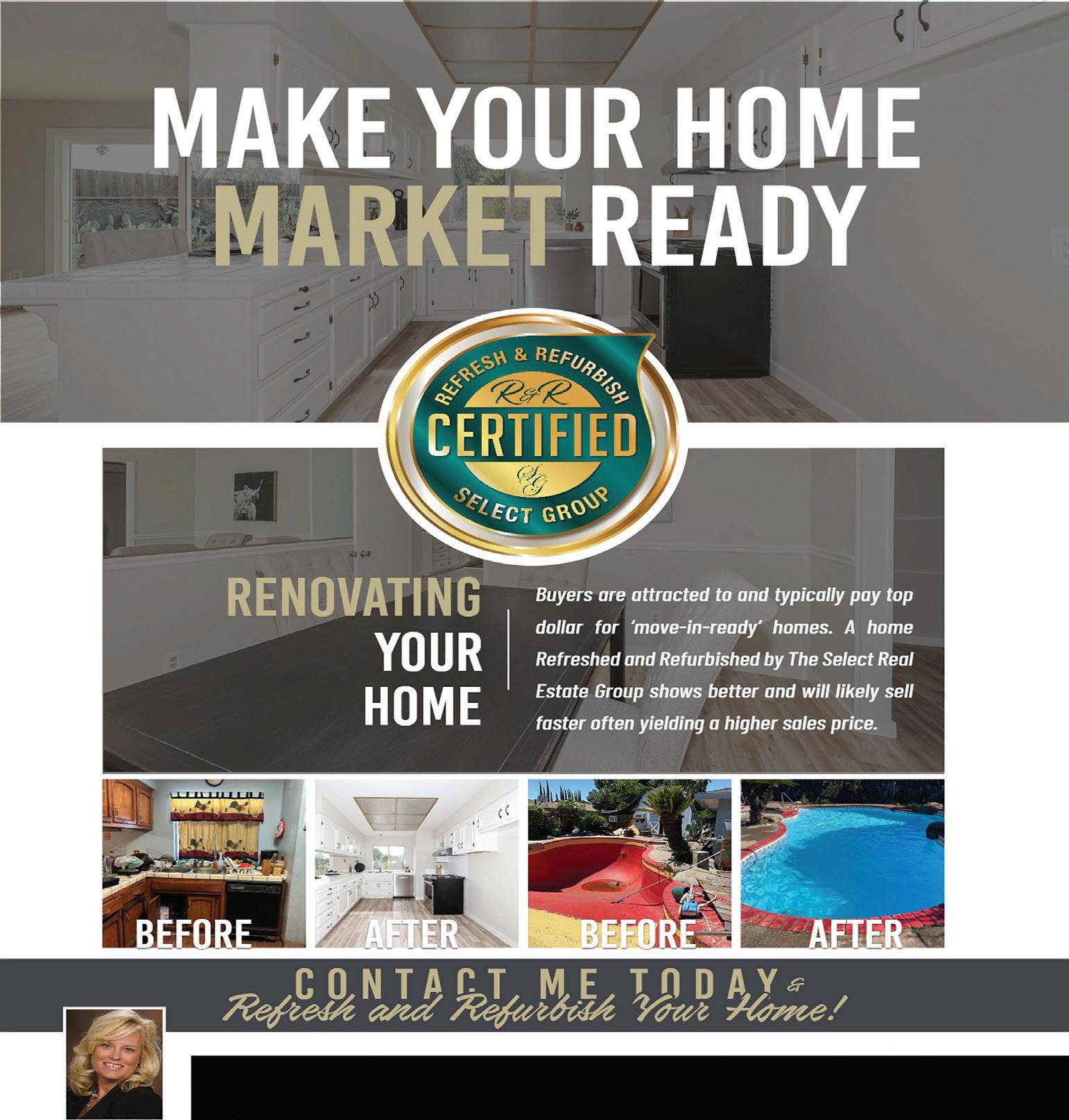Serving El Dorado County Home 2 Week of May 24, 2024 ADVERTISERS: PLEASE READ CAREFULLY! A proof is provided to avoid printing errors & to show the arrangement of composition. Mark all corrections with a pen. We cannot be responsible for printing errors not corrected on the proof. ORIGINAL COPY MUST BE SUBMITTED BY MONDAY at 12 p.m. Our deadline schedule does not allow unlimited copy changes or additions. FINAL APPROVAL MUST BE IN BY 1 P.M. WEDNESDAY LOW RES PROOF (for client viewing only) Ad Rep: Wes IO:85593 Artist: Ronda size: 2 x 10 Changes: Start Day: Friday F ile Name: 01.05.24 _Land&HomeFinancial graphics / Real estate/ L AD PROOF Attention: Wes Edwards H ©2024 CENTURY 21 Select Real Estate, Inc. All rights reserved. CENTURY 21® and the CENTURY 21 Logo are registered trademarks owned by Century 21 Real Estate LLC. Each Office is Independently Owned and Operated. I DON’T SETTLE FOR AVERAGE. RELENTLESS MOVES. 121% 2022 CENTURY 21 ® Estate OWned and �•led. $560,000 MLS#224026522 Janine4real.com QUALITY CUSTOM HOME NESTLED IN THE WOODS! Your family will enjoy year-round fun in this a beautiful and totally level natural setting! Lots of room for everyone! Formal dining room, large living room, and a separate family room with a cool wet bar and powder room, perfect for a game room! This well maintained, oneowner home is located in Audubon Hills, a wonderful country neighborhood with beautifully paved roads. Live the good life in desirable Camino, with fabulous farms for fresh produce, Christmas trees and wonderful bake shops! What are you waiting for? JANINE WAGGENER (530) 295-5509 DRE#00996221 READY TO BUY OR SELL? I specialize in helping both buyers and sellers achieve their goals. Whether you’re looking for your dream home or aiming to sell for top dollar, I will provide personalized service and guidance throughout the entire process. Contact me today to get started on your journey in the real estate market! DRE #01294098 Denise Karlsson • 530-305-0518 • Karlsson4re@gmail.com El Dorado Hills – (916) 933-4500 • www.C21selectgroup.com Give Michele Stewart a call & talk about the possibilities. (916) 870-8400 C21 El Dorado Hills, Manager direct line. Ready to make a change? Need a new perspective with your current Broker? Looking for an entrepreneur lifestyle? $139,000 MLS# 223083045 3493 Braden Rd, Camino 4.89 ACRE PARCEL OVERLOOKING THE BEAUTIFUL FOREST Enjoy the breath taking views & relaxing sounds of nature! Building pad and water meter installed and ready for you to build your home in El Dorado County’s Gold Country. The property is currently not being used but offers a 30 X 30 fenced & irrigated garden area that could easily be used for a produce farm or nursery. The convivence of the Water meter already installed adds approximately a $30,000 value savings .The location of this acreage provides nearby creeks, lakes & rivers for for you to fish and all are rumored to still have plenty of gold in them. DRE# 02125865 GARY STEWART (916) 539-8695 $590,000 MLS# 223083045 516 Costa Lane, Lincoln PRICE IMPROVEMENT! This rare find is Perfect for the first-time home Buyer or Investor. This home has been completely remodeled and shows like new. Reap the benefits of a new construction home with low mello roos ($35/mo), No HOA, natural gas available for stove, dryer, fireplace, water heater & more affordable. This property has not been lived in since the construction. Enjoy the outside with the backyard covered patio, gas BBQ & a spa. Beautifully tiled front entry courtyard with water feature, welcomes you. DRE# 01018760 PETE VASQUEZ (916) 257-0123 ©2024 CENTURY 21 Select Real Estate, Inc. All rights reserved. CENTURY 21® and the CENTURY 21 Logo are registered trademarks owned by Century 21 Real Estate LLC. Each Office is Independently Owned and Operated.