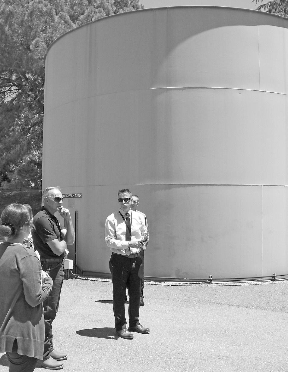 The tour group led by Water Treatment Supervisor Bill Petterson trooped up and down metal stairs surveying every inch of the facility. Petterson described in detail why the 63-year-old plant is in dire need of upgrades and renovation as the county and its water needs continue to grow. In particular Petterson outlined how often he and his sta have had to come up with creative “MacGyver” type solutions due to the age of the equipment, system limitations that occur during peak demand and the ongoing need to provide quality water using current technology. And all of this despite previous upgrades to the plant.