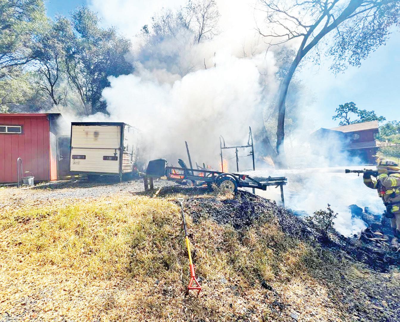 At 10:30 a.m. Friday, June 7, firefighters responded to an outbuilding and several vehicles on fire near a home off Mistywood Lane in Shingle Springs. EDCFPD Division 8101, Division 7705, Engine 28, Engine 25 and Medic 28 responded. Crews were assisted by Cal Fire Amador-El Dorado Unit Engine 2781, Engine 2782, and Cameron Park Engine 88 and Engine 89; Diamond Springs-El Dorado Fire Protection District Engine 349, El Dorado Hills Fire Department Engine 86, and Rescue Fire Department Engine 383. The cause of the fire is under investigation. No injuries were reported.