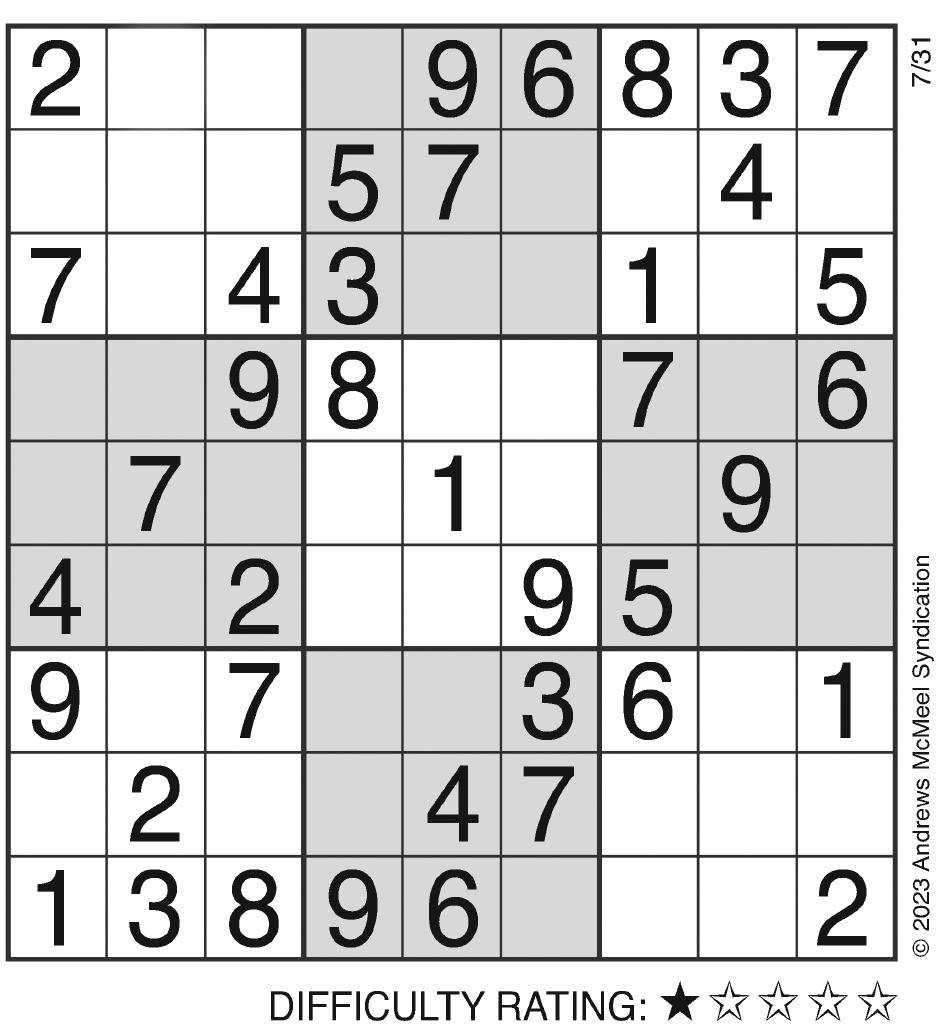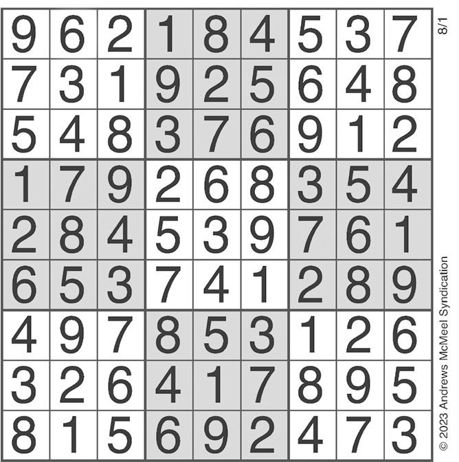 Complete the grid so that every row, column and 3x3 box contains every digit from 1 to 9 SUDOkU Solutions to puzzles in Classified section of newspaper.