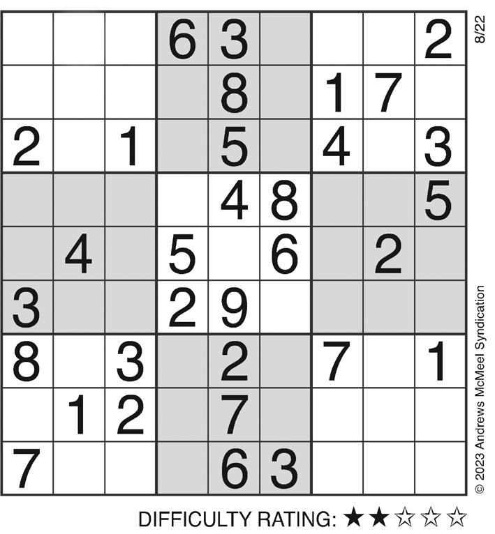 makes your part tricky. You don’t have to choose sides. You’ll be the agent of unity who can bring cohesion to this scene. You see the big picture and a common goal. n TODAy HOROSCOPE by Holiday Mathis Complete the grid so that every row, column and 3x3 box contains every digit from 1 to 9 SUDOkU Solutions to puzzles in Classified section of newspaper.