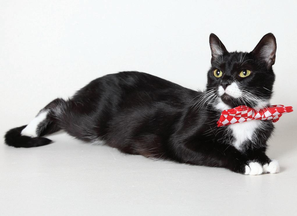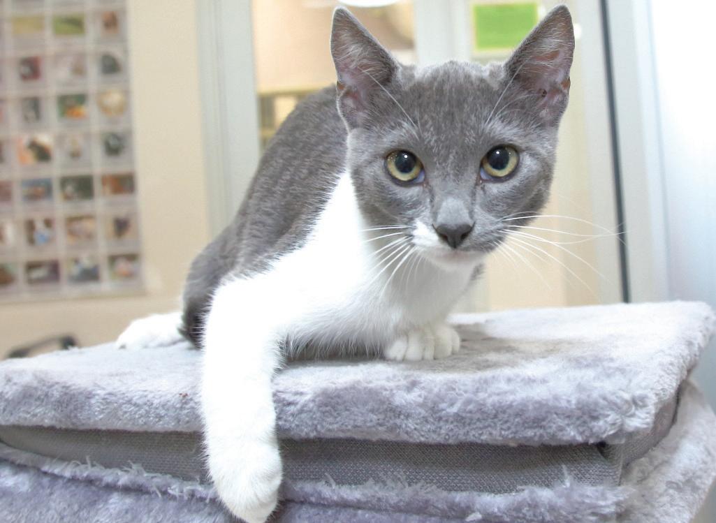 F B&W DSH 14 mo. She has been super-mom to a few litters of kittens. Very loving & deserving; a staff favorite.