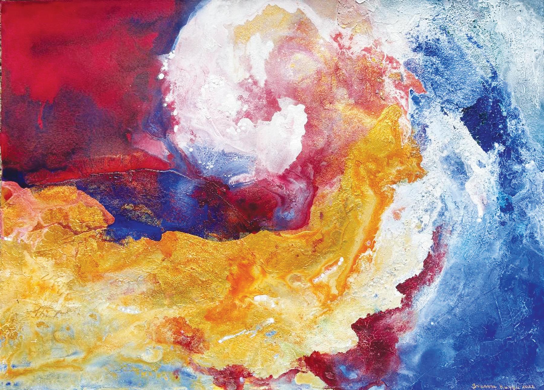 “My enthusiasm for ‘abstract’ has blossomed,” Vernon said. “ I’ve done pastel abstracts and fused glass abstracts. Now I’m really enjoying the fluidity and spontaneous quality of crystal watercolors.” (Did someone say something about water?)