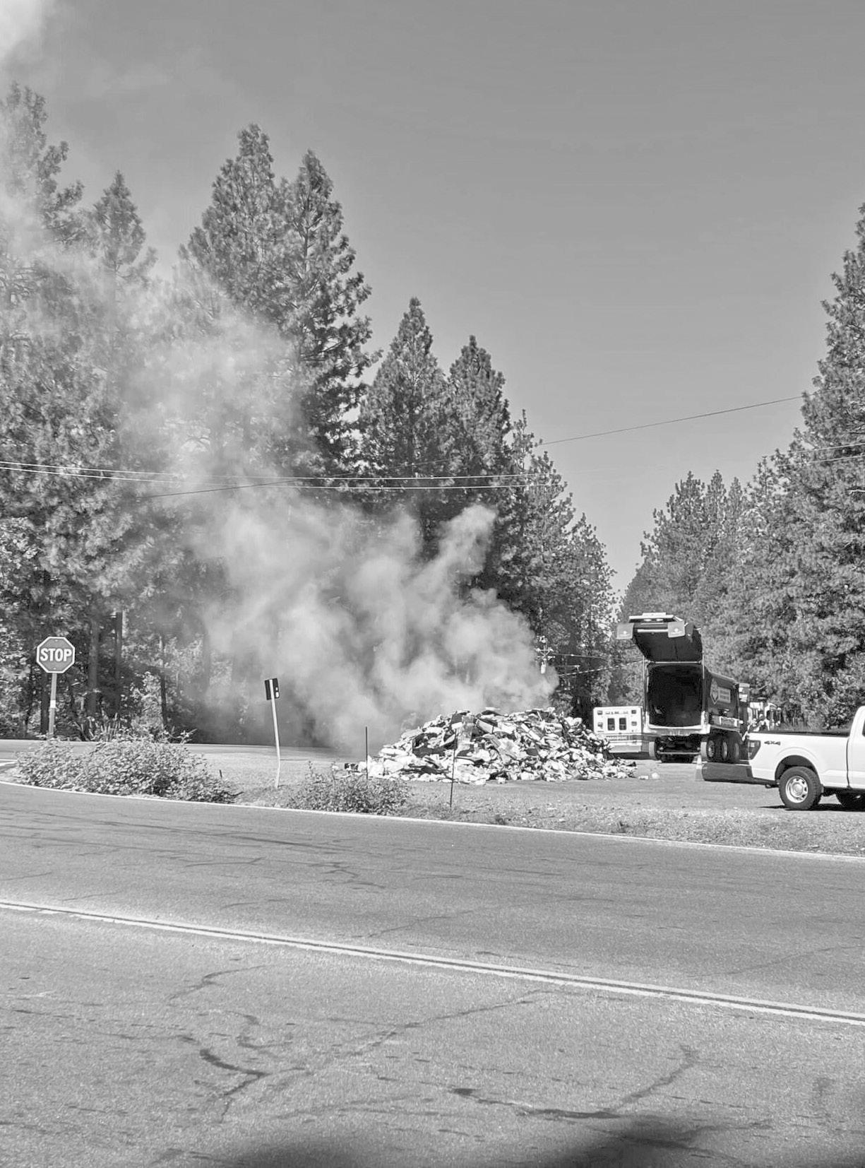 The driver initially pulled into the Cal Fire station in Camino and was instructed to o oad the trash in the gravel lot at Carson Road and Pony Express Trail, which is away from vegetation, allowing firefighters to keep flames to the trash load. The fire was reportedly out by 12:30 p.m. Poganski noted the trash was later picked up.
