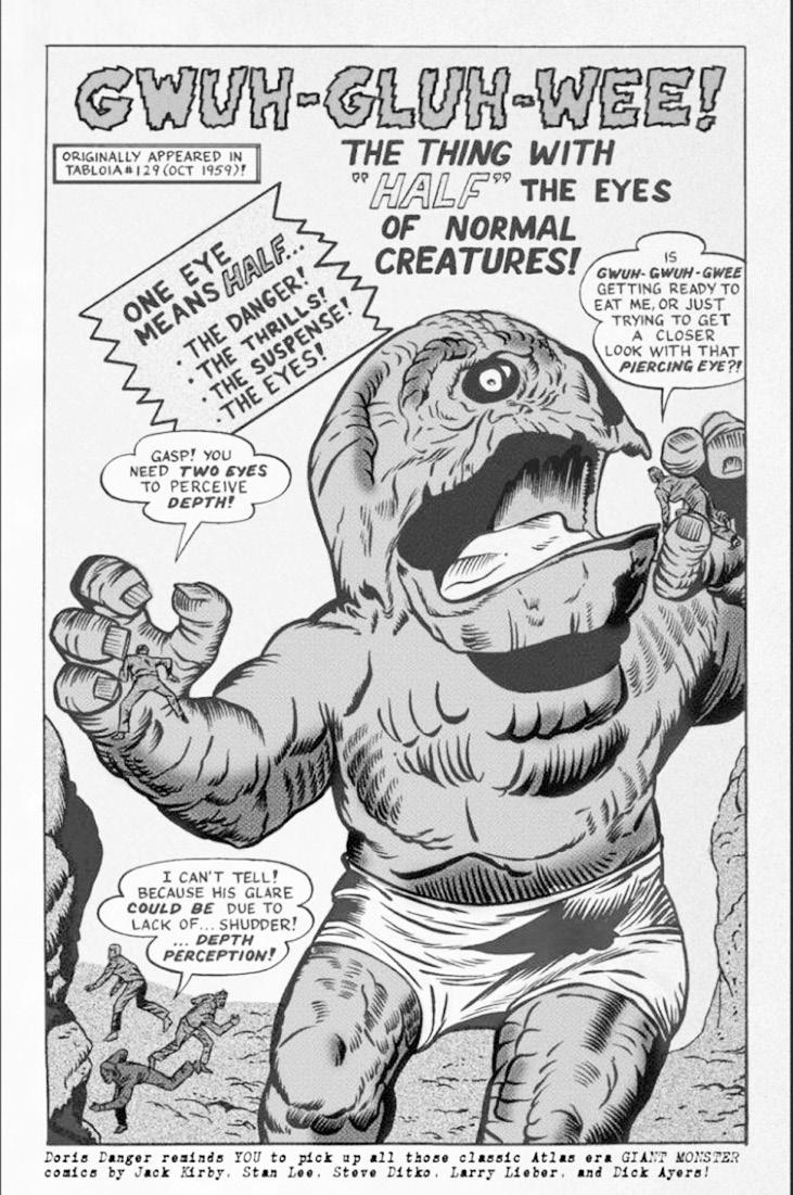 Doris Danger, who explores the exotic globe, hoping to prove the existence of wonky-looking, retro GIANT MONSTERS wearing underpants, as inspired by (and as a parody of) the pre-super hero comics of Jack Kirby, Steve Ditko and Stan Lee (the creative team who shortly after created practically the entire Marvel Universe). That led to Wisnia’s publishing three Doris Danger graphic novels for SLG Publishing and then further up the industry ladder to this allnew book with Fantagraphics (see the publisher’s book description at fantagraphics.com/products/dorisdanger-giant-monsters-amok). Those