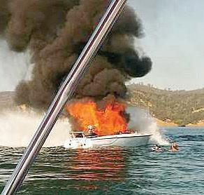 The EDH Fire Department responds to emergencies at Folsom Lake, including this boat fire, left photo, in which two people suffered burns.