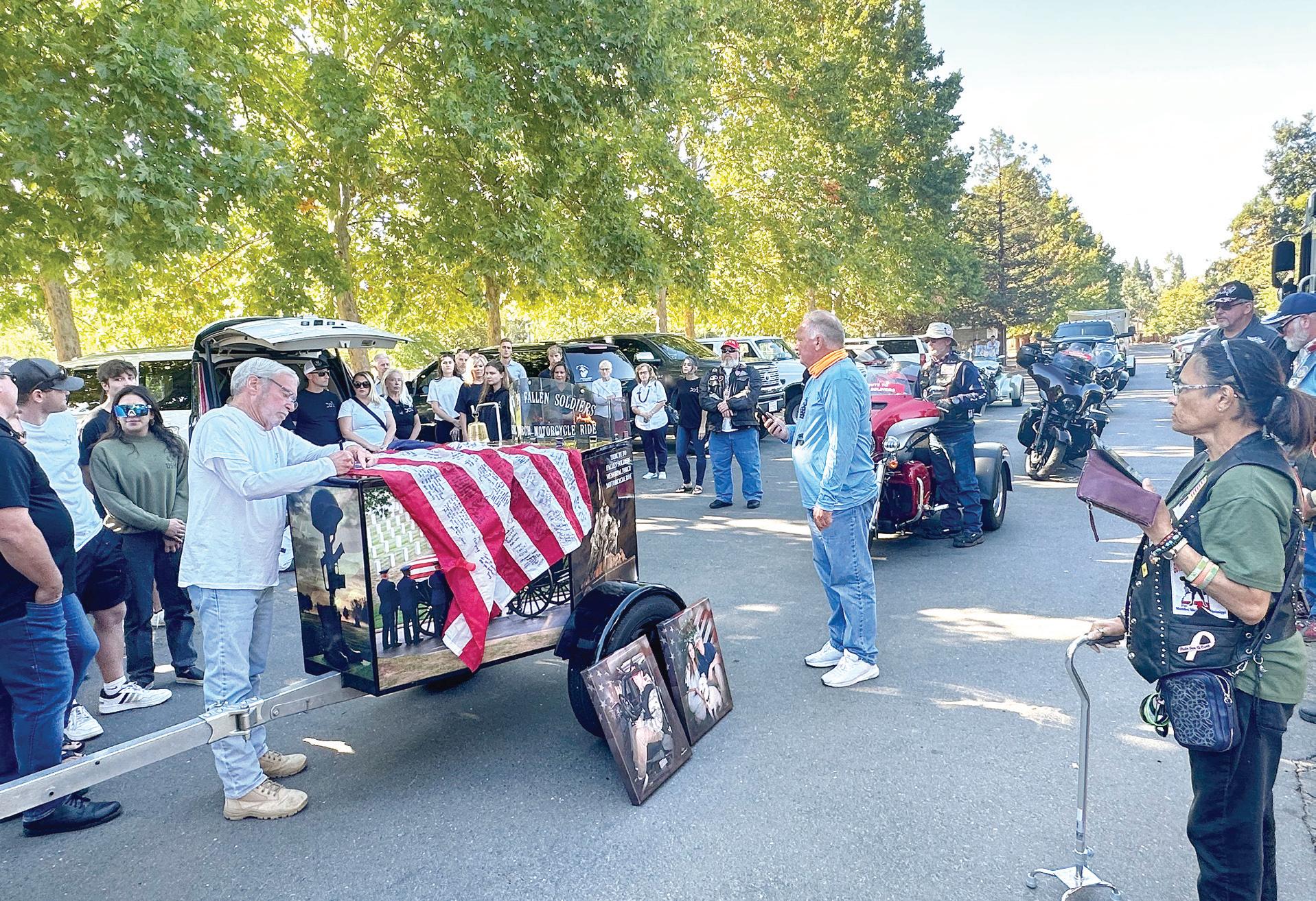 The bikers rode in with a memorial torch and trailer attached