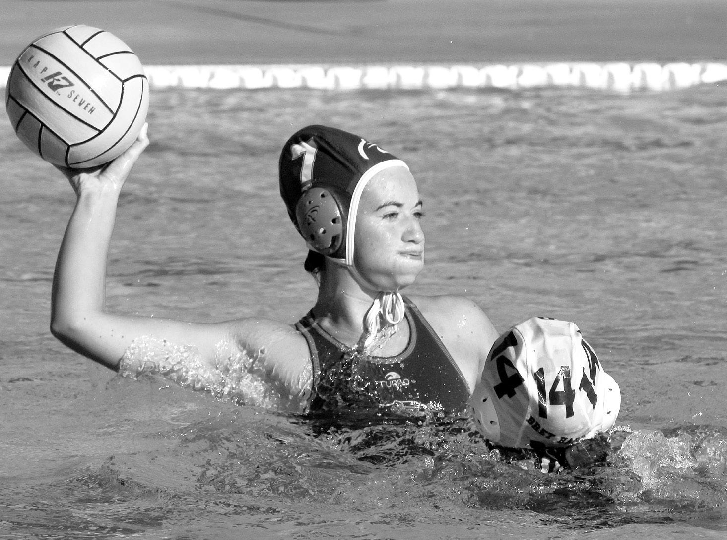 El Dorado’s girls water polo team beat Bret Harte 15-5 on Sept. 27. The Cougars are led this season by senior captains Millie Robertson, pictured taking pressure from a Bret Harte defender, and Betsy Yost. Each tallied 3 goals. El Dorado has a strong, young team. Sophomore Hannah Musgrove is the top scorer so far this season and Annabelle Gould, also a sophomore, is playing strong as center defender. The Cougars are lucky to have a 6-foot-tall sophomore goalie in Haven Little, who is a beast in goal.
