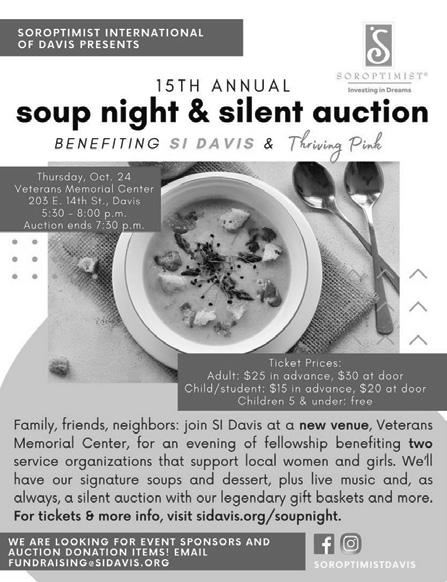 Soroptimist of Cameron Park/El Dorado Hills is seeking grant applications from women who serve as the primary earners for their families and require financial assistance to continue their education or training. Live Your Dream Award applications are available at bit. ly/LYDA-apply. Deadline is Nov. 15. (Club number for SICPEDH is #116408.) For more details visit sicpedh.org or call (916) 933-8205.