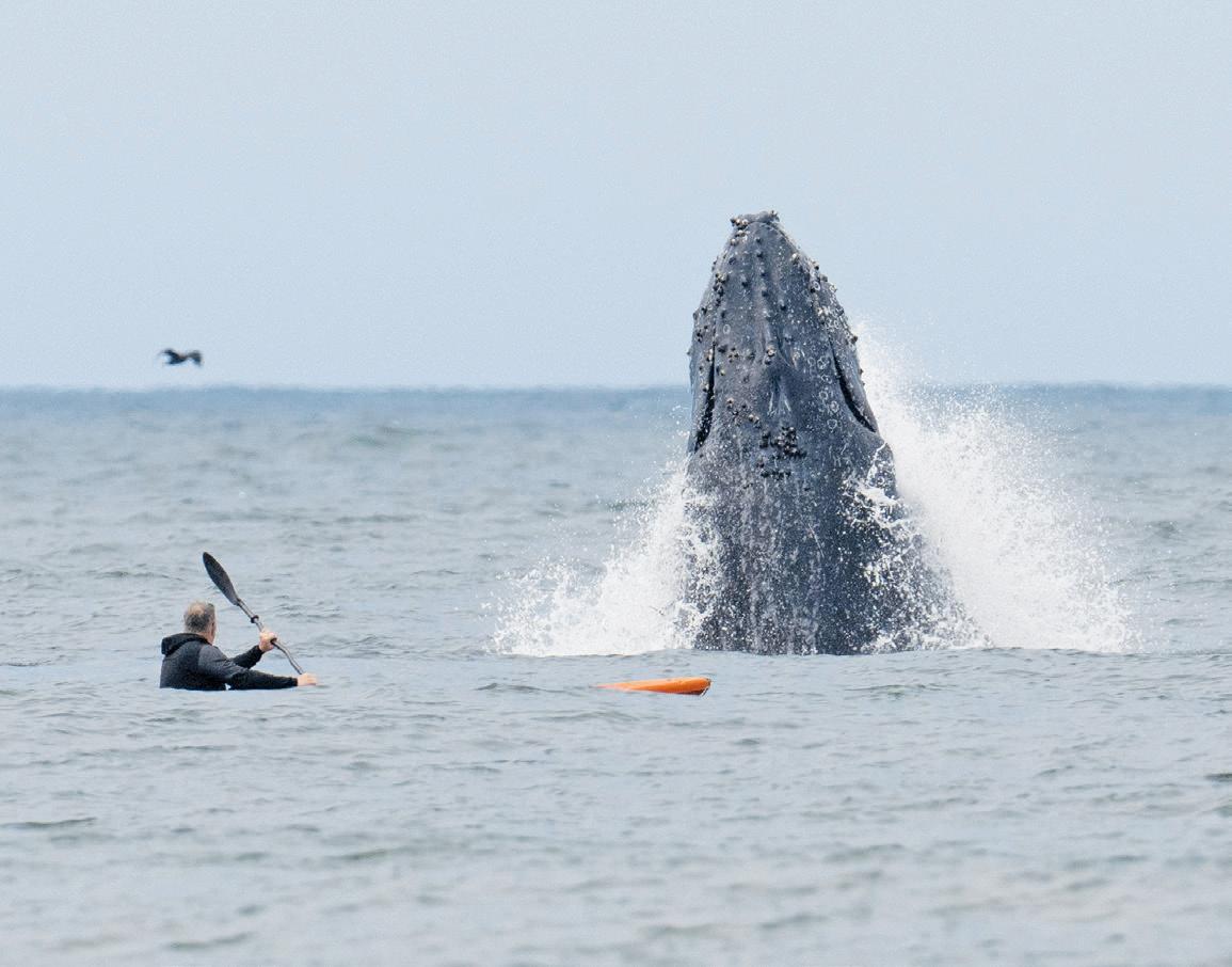 in a rare event, numerous humpback whales spent time unusually close to shore in Pacifica. They could be photographed from all along the shore, including beaches and the pier, lunge feeding and even breaching. It’s thought the anchovy schools they eat moved in closer than usual due to water temperature changes related to climate change. The whales get so close, they overlap with the areas used by kayakers near the beaches. Occasionally, a kayaker gets a big, sudden surprise.
