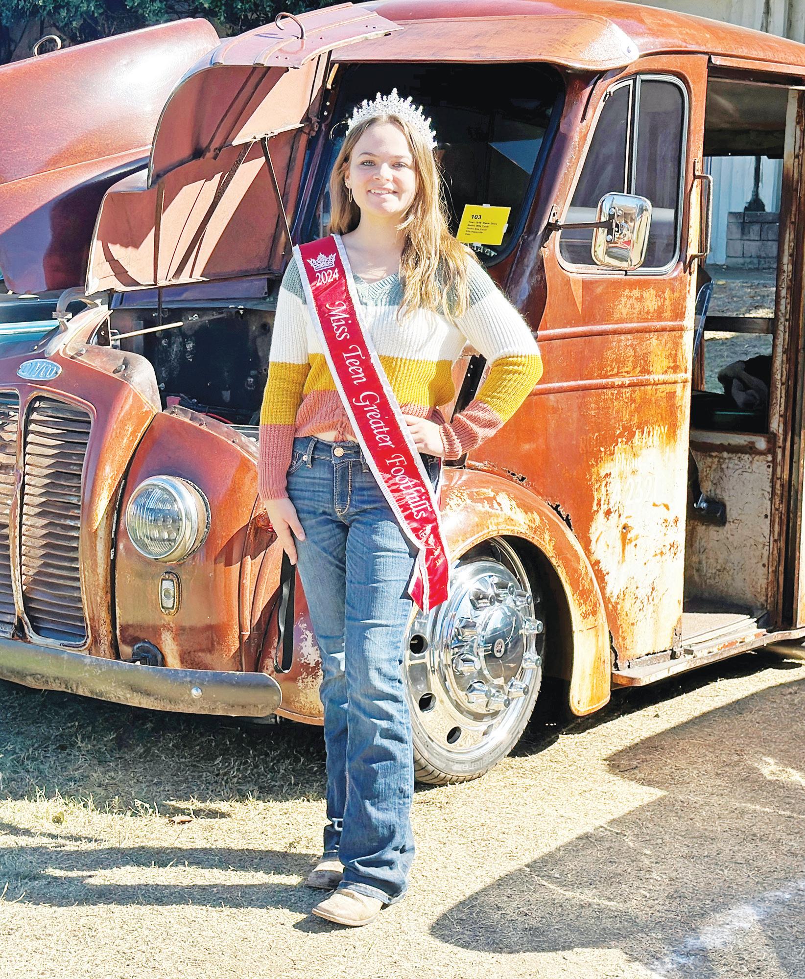 Hot rods, sports cars, classics and more were parked at the El Dorado County Fairgrounds in Placerville Oct. 19 for the Placerville Lions Club’s Hangtown Car Show. Above, Fred Pedersen, also known as “Peacemaker” for the Hangtown Marshals, takes a photo of his 11-year-old grandson Chaz Deal in front of Gary Woods’ 1965 AC Cobra. At right, Madison Tatum, 17, the 2024 Miss Teen Greater Foothills, poses for a photo in front of Ken Carver’s 1948 Divco milk truck. This year the Placerville Lions members celebrate the club’s 100th anniversary and the numerous community service projects Lions have done over the last century, including caring for the environment, feeding the hungry, aiding seniors and the disabled and serving local youth. For more information about the club visit e-clubhouse.org/sites/ placervilleca or check out the group’s Facebook page.