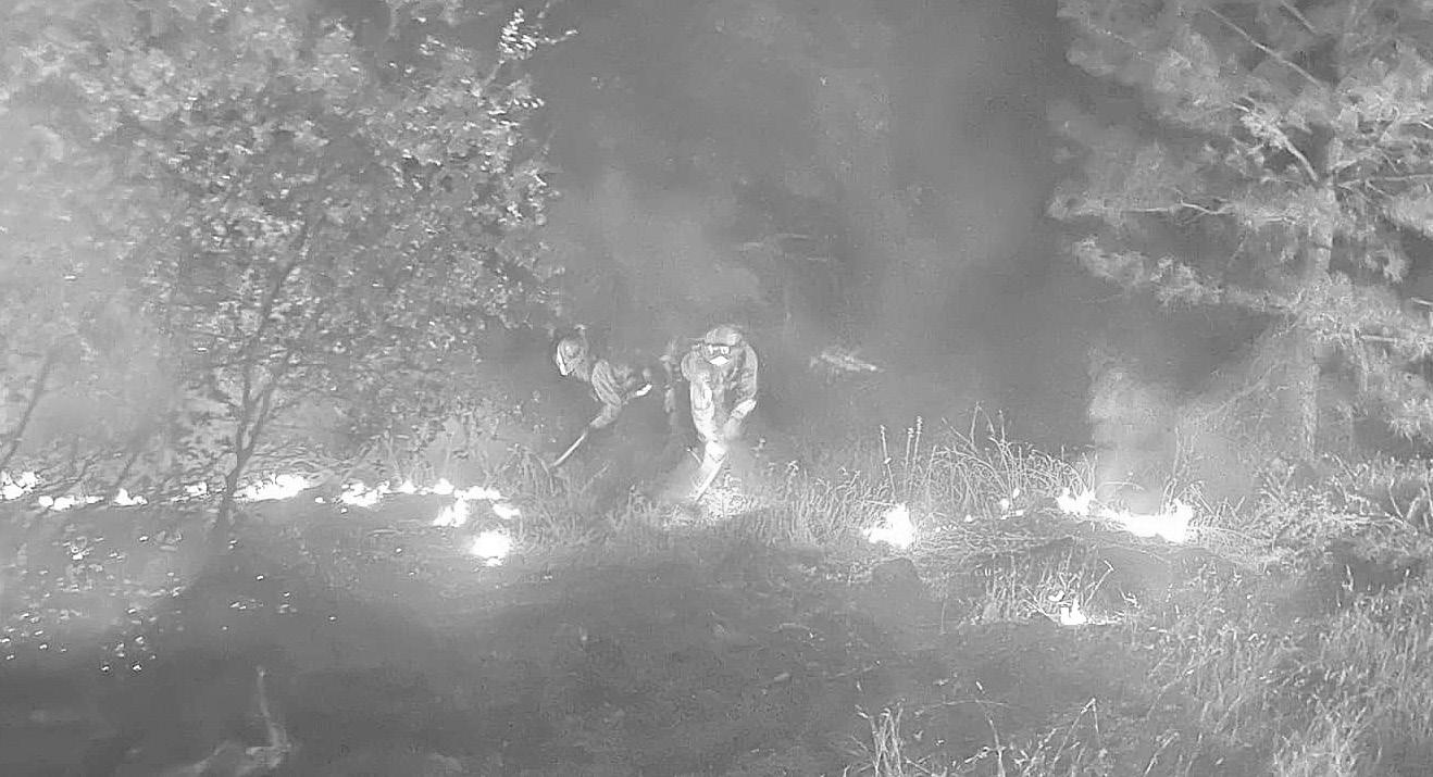 Dozers dig in to repair fire lines constructed to fight the Mosquito Fire. These operators are working on the Placer County side.