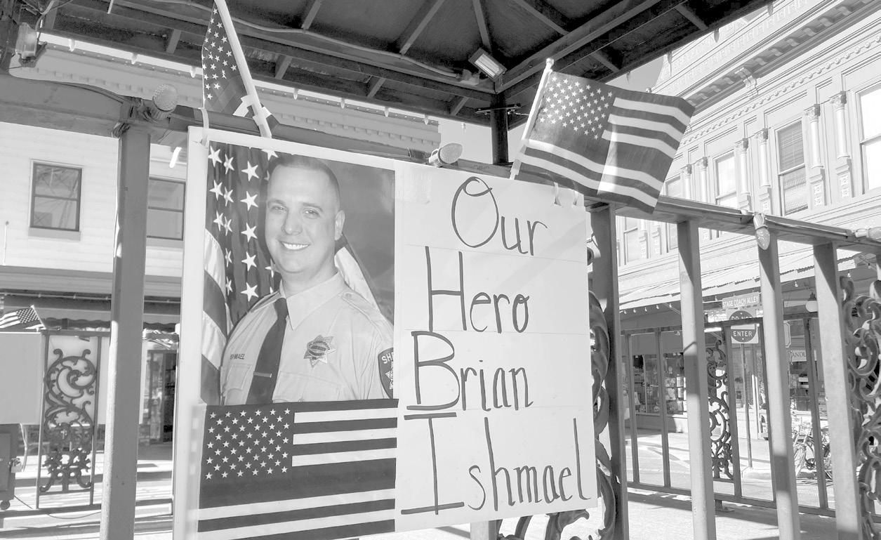 El Dorado County sheriff’s deputy Brian Ishmael was on the community’s mind Sunday, Oct. 23, which marked three years since he was killed in the line of duty while responding to a report of robbery from a marijuana garden. In honor of Ishmael, memorials went up around Placerville, including on the bell tower, left photo, and Ray Lawyer Drive overpass, and the El Dorado County Sheriff’s Office Explorers, top photo, held a run in the fallen deputy’s memory.