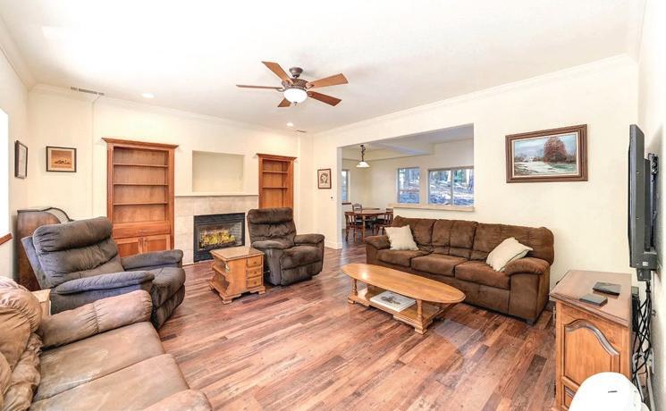 roughout this lovely home you’ll nd custom nishes for a perfect warm and welcoming feel. You’ll LOVE the kitchen with granite counters, custom backsplash, a butcher block island and large pantry. Open concept living and the large dining area make for wonderful entertaining spaces, and the living room has a custom replace surround, and e cient woodstove insert. e primary bedroom features 3 closets and a GORGEOUS custom bathroom. Between the attached 2-car garage and kitchen is a FABULOUS enclosed breezeway with skylights!