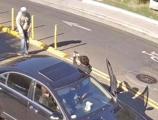 Both men left the park ing lot in their own vehi cles. When they stopped at a red light at Richards Boulevard, the victim got out of his car to speak with the suspect, who exited his car and brandished “what appeared to be a semiauto matic weapon,” Beckwith said.