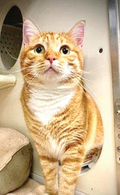 Also hoping for a good home is Tiger (A197966), a 3-year-old male orange tabby cat. Tiger is a sweet boy who appreciates chin rubs and head pats, but likes his own space when he is done with pets. Tiger is dealing with FLUTD (feline urinary tract dis ease), which can be man aged with a proper diet, monitoring and decreasing stress.