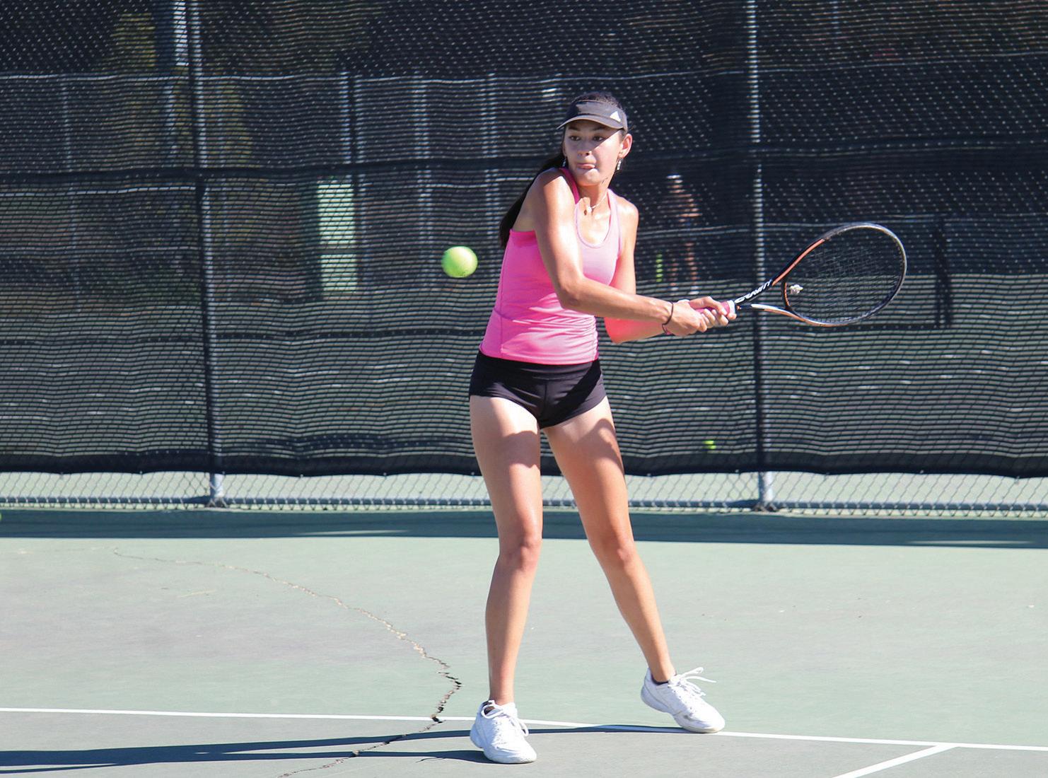 DHS girls tennis player Maya Edmonds, seen here during practice earlier in the season, won her match in Thursday’s Delta League finale against St. Francis.