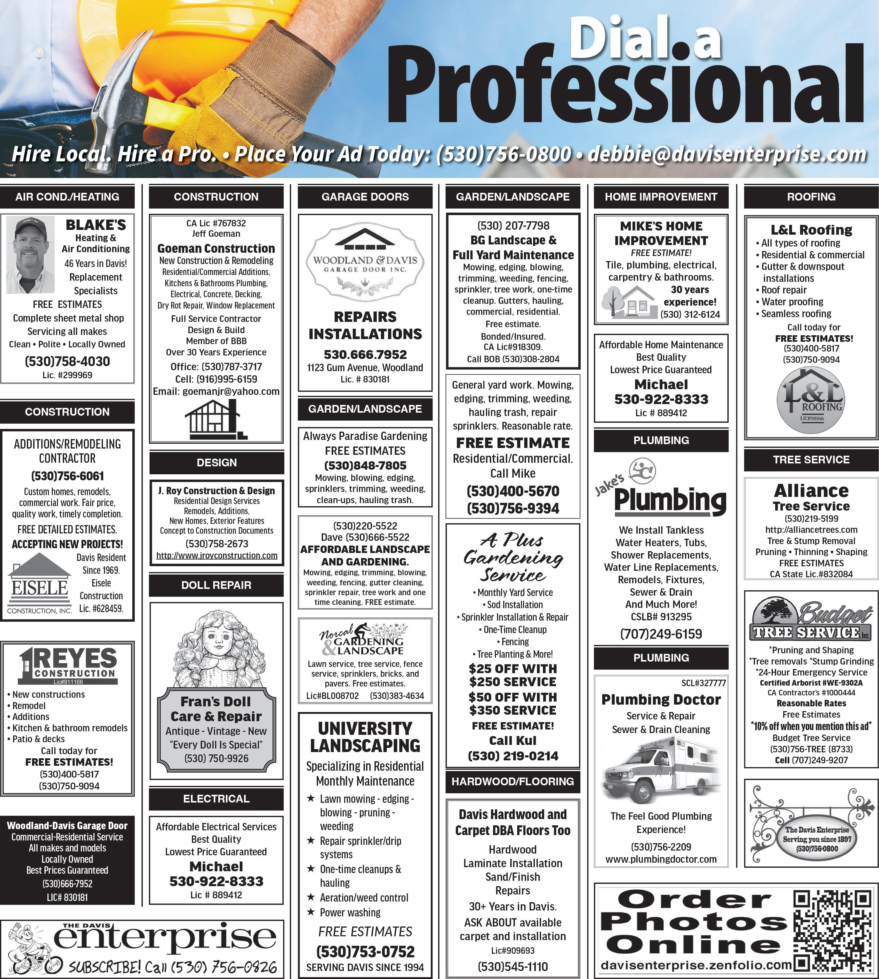 INDEX HOW TO REACH US www.davisenterprise.com Main line: 530-756-0800 Circulation: 530-756-0826 http://facebook.com/ TheDavisEnterpriseNewspaper http://twitter.com/D_Enterprise VOL. 124 NO. 130 Saturday: Sunny with a calm wind. High 75. Low 46. WEATHER Arts B1 Classifieds A4 Comics B5 Forum B4 Movies A5 Obituaries A5 Pets A7 Sports B8 The Wary I A2 WED • FRI • $1 en erprise FRIDAY, OCTOBER 28, 2022 THE DAVISt