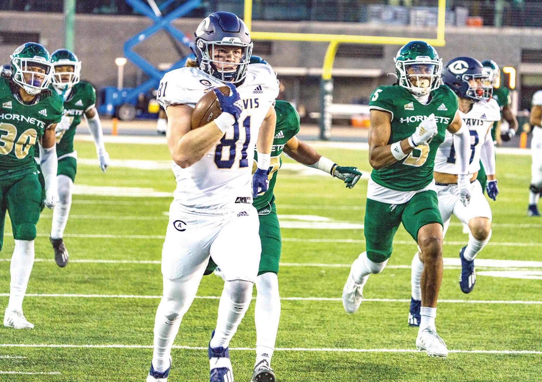 A 15th straight field goal from Gomez, again from 37 yards, brought the Aggies within 17-13, but O’Hara scored on an 8-yard run with a somersault into the end zone to give the Hornets a seemingly insurmountable 24-13 advantage midway through the fourth quarter.