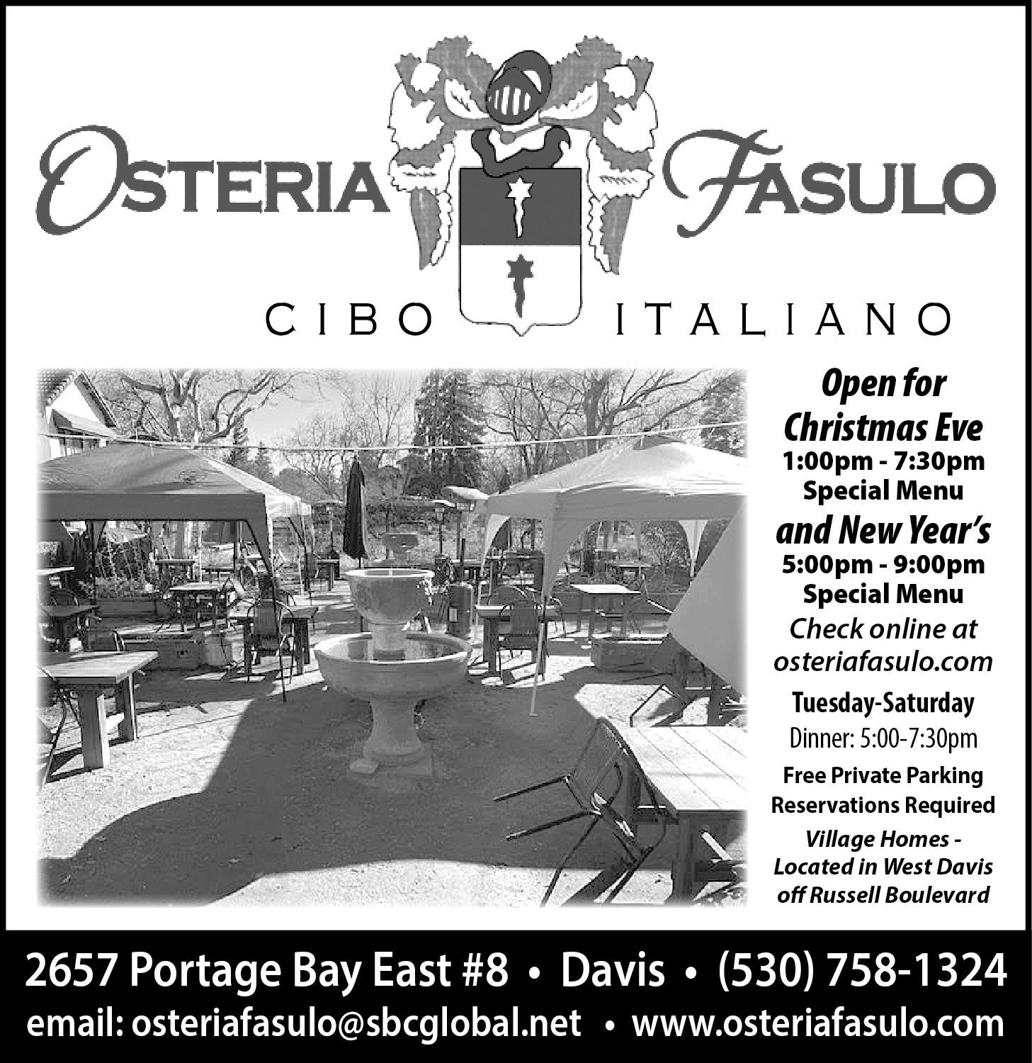 If you do not receive your Enterprise by 5 p.m. on Wednesdays or Fridays or 7 a.m. on Sundays, please call 530756-0826. Missed issues will be delivered on the next publishing day. HOME DELIVERY Please send correspondence to The Davis Enterprise P.O. Box 1470 Davis, CA 95617-1470 MAILING ADDRESS PHONE, MAIL OR IN PERSON Home delivery: 325 G St., 530-756-0826 Delivery phone hours : Mon.-Fri. 9 a.m.-1 p.m.; Sun. 7-10 a.m. Business office : 325 G St. 530-756-0800 Hours: Mon. - Fri. 9 a.m. - 4 p.m. EMAIL News newsroom@davisenterprise.net Sports sports@davisenterprise.net Home Delivery circulation@davisenterprise.net Classifieds classads@davisenterprise.net Advertising ads@davisenterprise.net Legal Notices legals@davisenterprise.net Obituaries obit@davisenterprise.net Production graphics@davisenterprise.net ON THE WEB www.davisenterprise.com Copyright 2022 HOW TO REACH US About us 2022 Member California News Publishers Association Certified Audit of Circulations The Davis Enterprise is published Wednesdays, Fridays and Sundays by The Davis Enterprise Inc., 315 G Street, Davis, CA 95616. Application to Mail at Periodicals Postage Prices is Pending at Davis, CA. POSTMASTER: Send address changes to to The Davis Enterprise, P.O. Box 1470, Davis, CA 95617-1470. Phone 530-756-0800 R. Burt McNaughton Publisher Sebastian Oñate Editor Nancy Hannell Advertising Director Shawn Collins Production Manager Bob Franks Home Delivery Manager SUBSCRIPTION RATES FOR CARRIER DELIVERY (plus tax) Home delivery $3.69 per week Online $3.23 per week 12 weeks $44.84 24 weeks $89.30 48 weeks $159.79 Local A2 THE DAVIS ENTERPRISE FRIDAY, NOVEMBER 25, 2022
