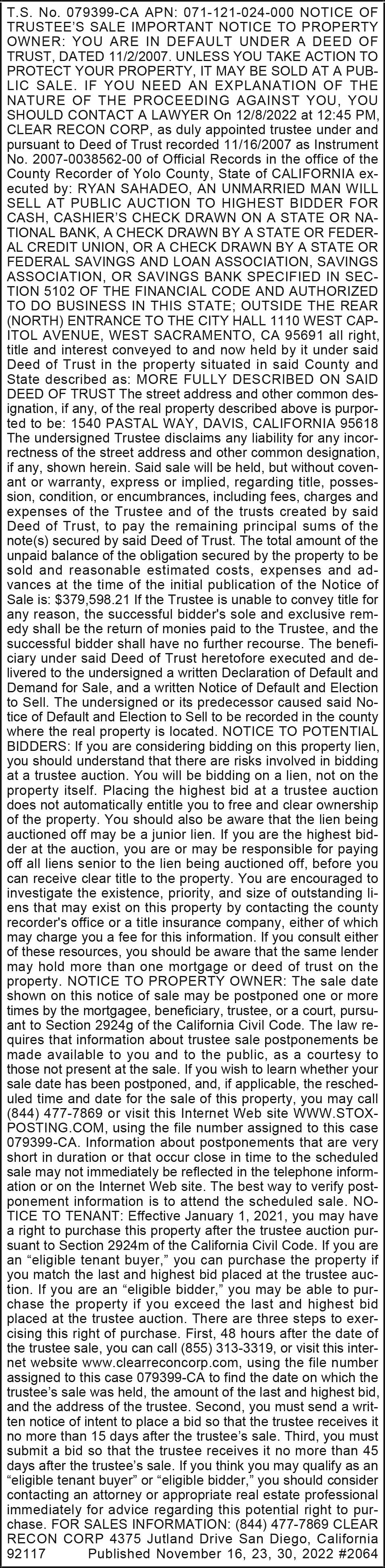 THE DAVIS ENTERPRISE — WEDNESDAY, NOVEMBER 30, 2022