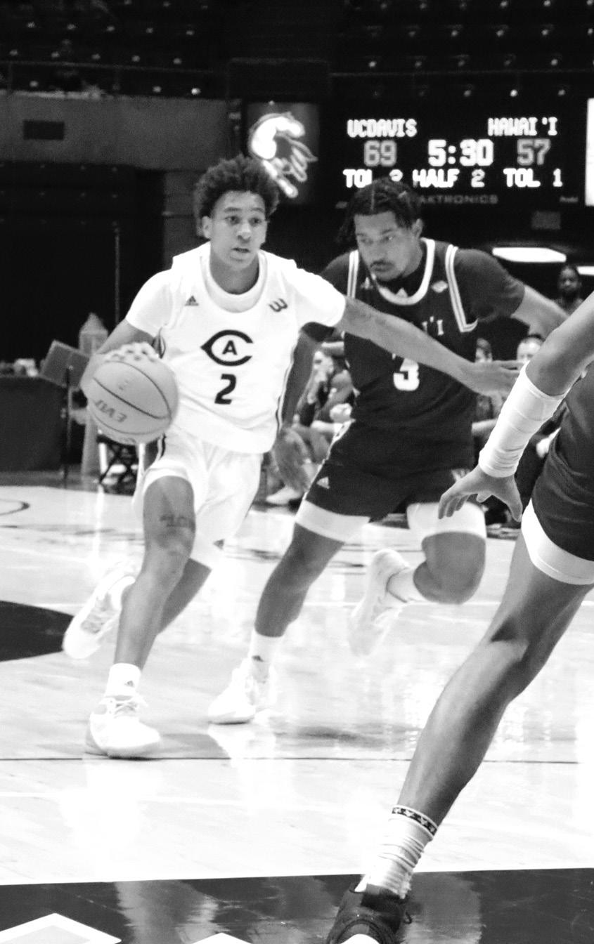 Two free throws by Johnson gave UCD a 54-40 advantage with 13:13 remaining, but after Hawaii trimmed the deficit to 60-52,