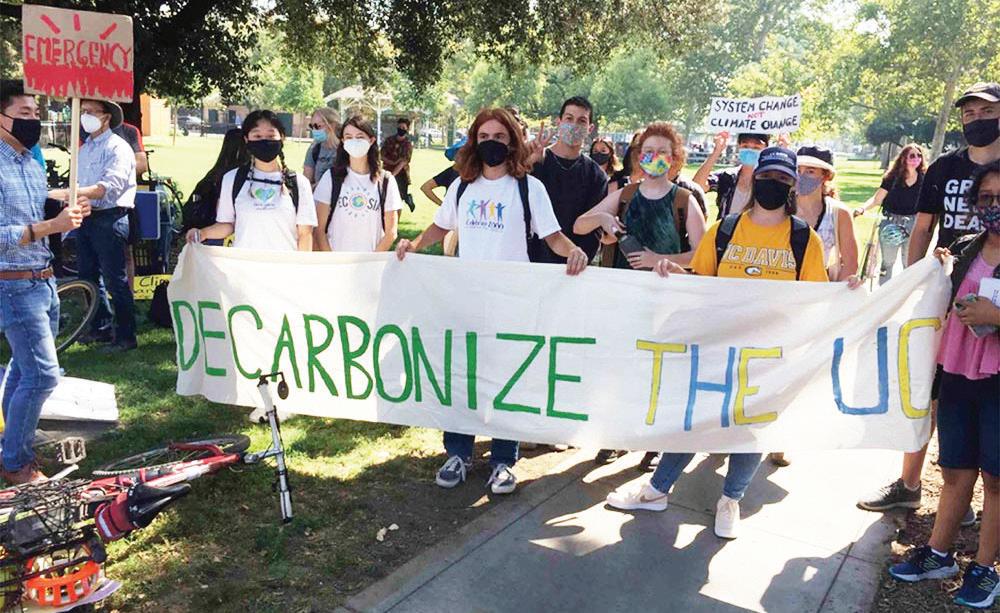 UC Davis students protest in Davis on Sept. 24, 2021, demanding an end to fossil-fuel use across the UC system.