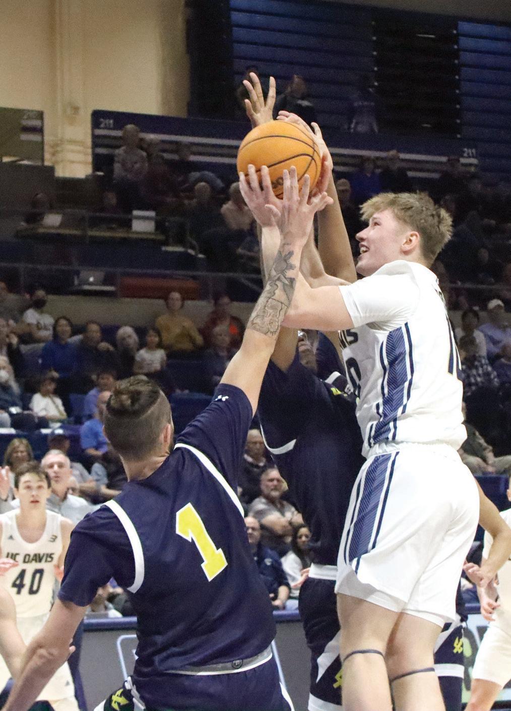 TY Johnson, UCD’s second-leading scorer at 15.2 points a game, got in early foul trouble and played only 13 minutes while being held scoreless.