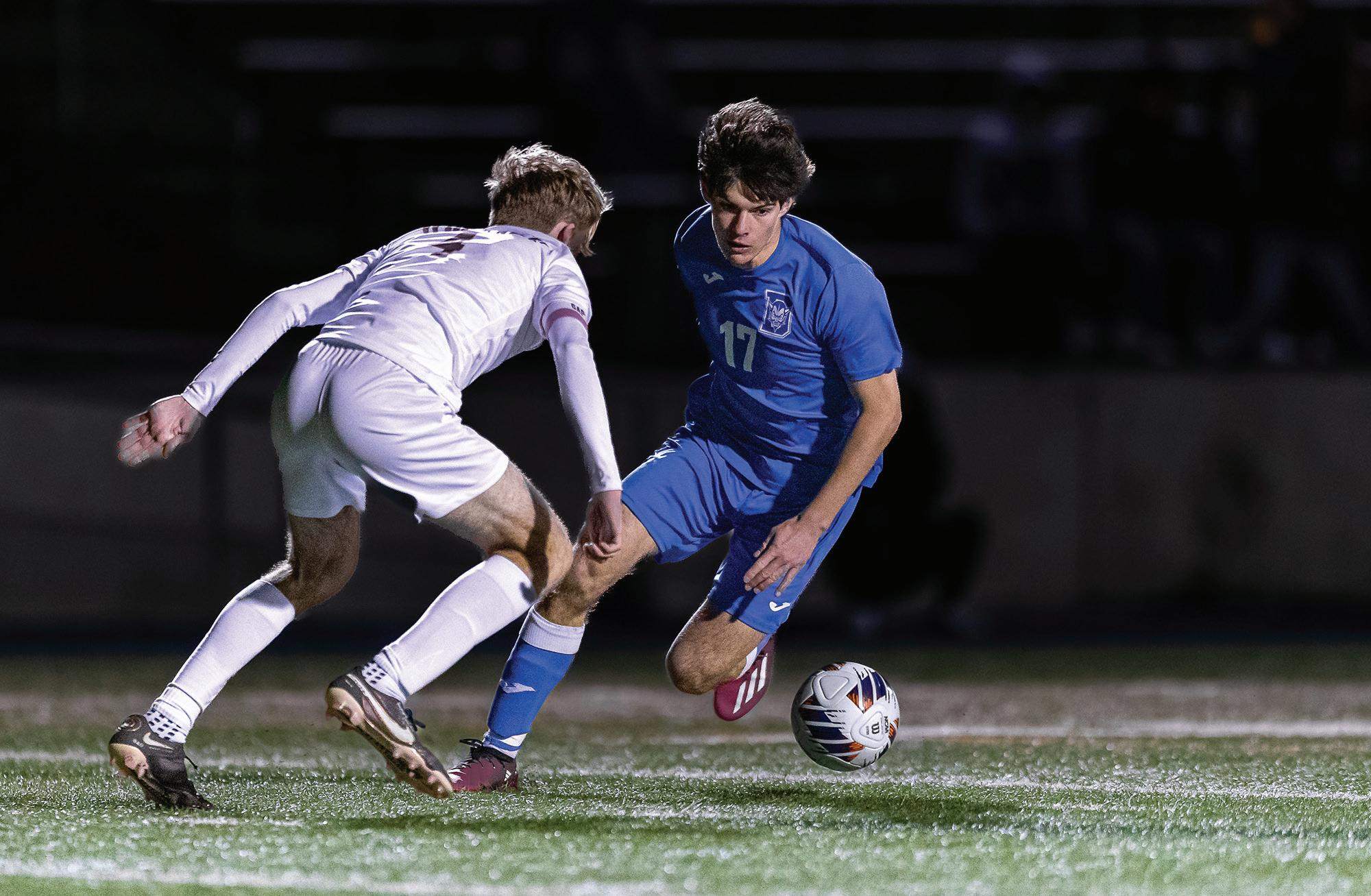 Blue Devil goalies Declan Fee and Joey Clark, also seniors, took turns in defending the net in the first and second halves, respectively.