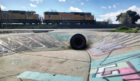 After hearing from some Gen-X skaters about “the Ditch,” my boyfriend Alex, dog Brownie and I went out to the old agricultural drainage ditch on County Road 32A near the Union Pacific railroad tracks and Dhillon Ranch.