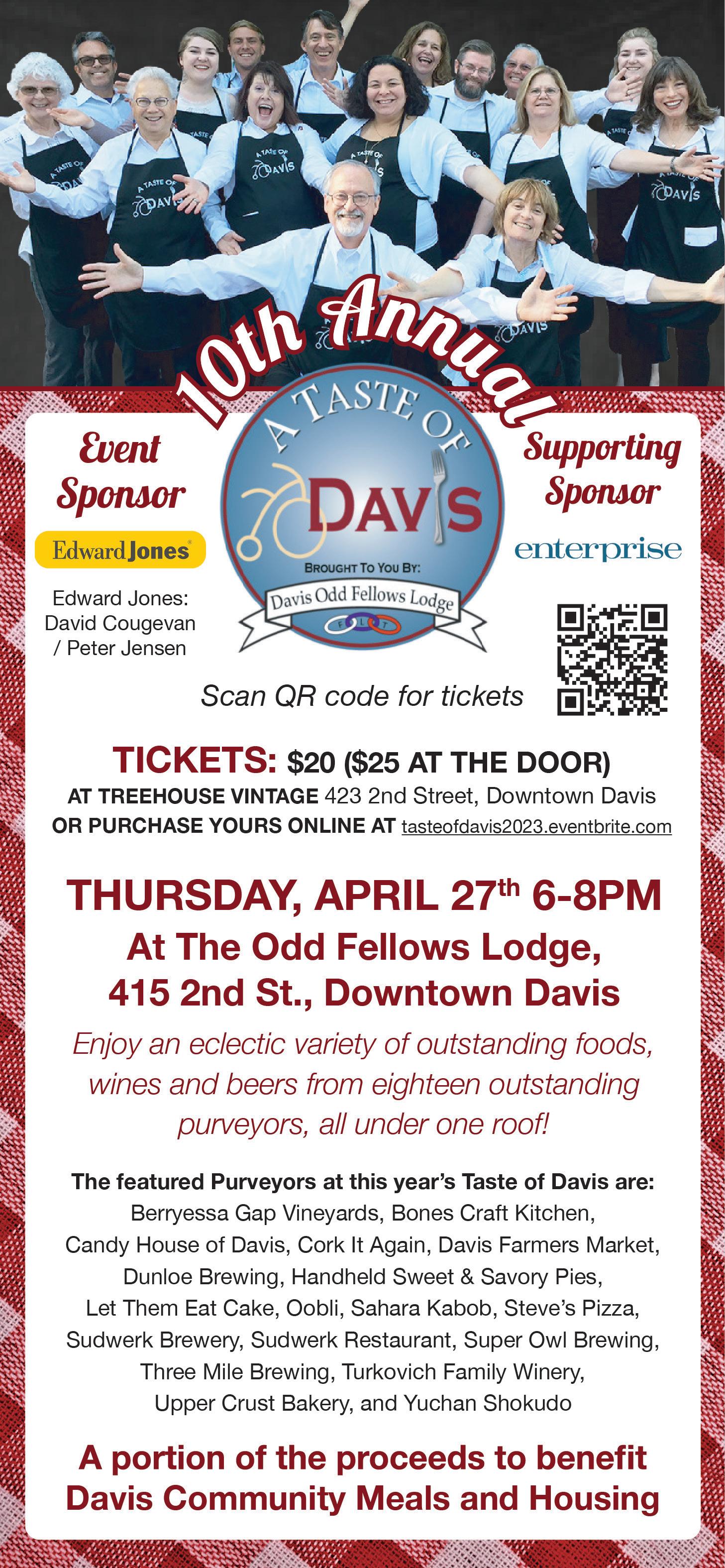 Grants helps families in tough times — Page B4 Sports Thriving Pink Business Sudwerk’s restaurant set to open — Page A3 DHS boys tennis off to another great start. — Page B1 en erprise SUNDAY, APRIL 2, 2023 THE DAVISt INDEX HOW TO REACH US www.davisenterprise.com Main line: 530-756-0800 Circulation: 530-756-0826 http://facebook.com/ TheDavisEnterpriseNewspaper http://twitter.com/D_Enterprise VOL. 125 NO. 40 Today: Partly sunny and cool. High 62. Low 37. WEATHER Business A3 Calendar A6 Classifieds A4 Comics B5 Forum B2 Living B4 Obituary A5 Op-Ed B3 Sports B1 SUNDAY • $1.50