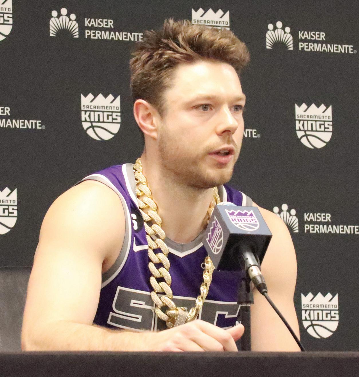 Sacramento Kings guard Matthew Dellavedova talks to the press after the team’s win over the Utah Jazz on March 25.