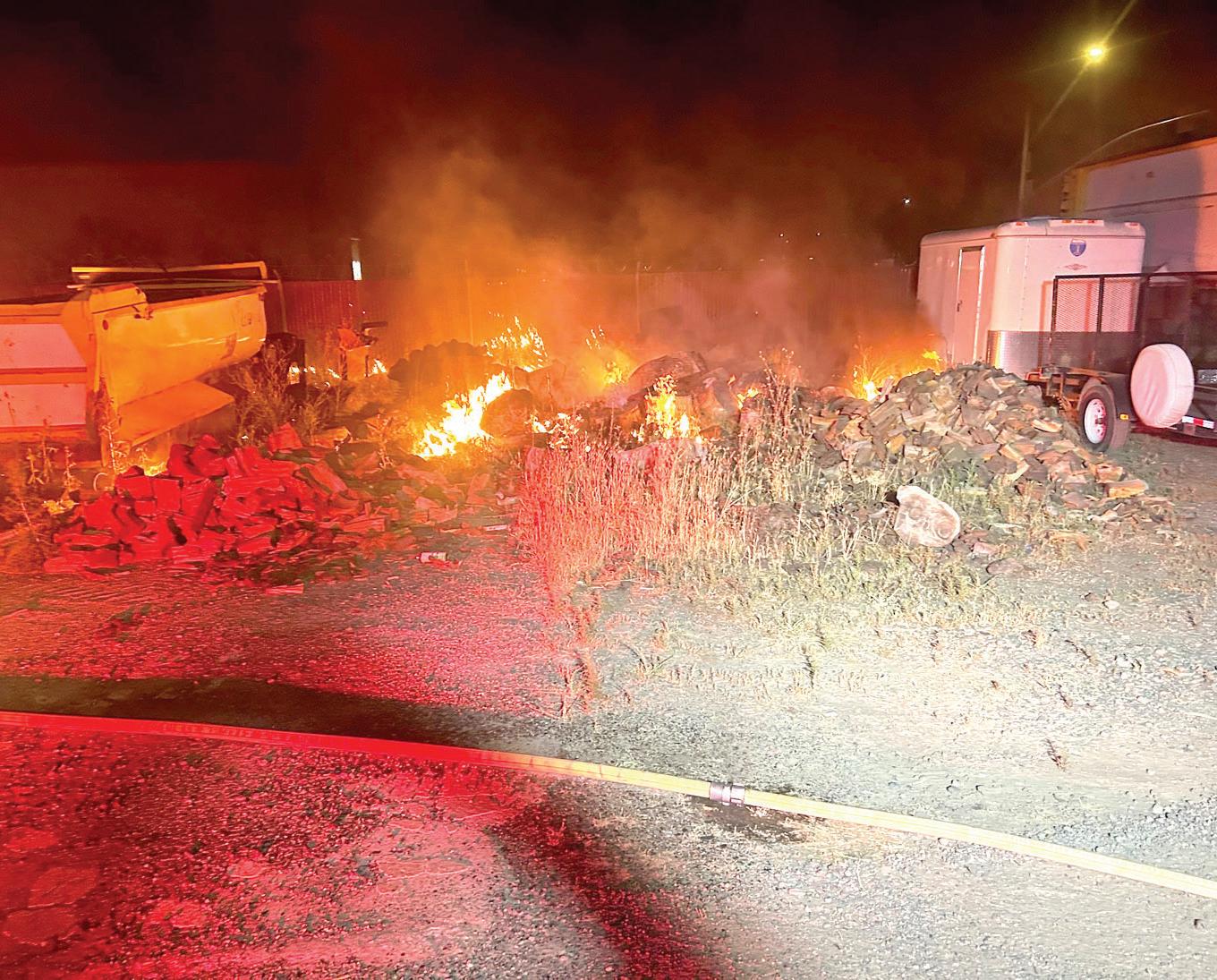The second fire sparked near the E. Grant Avenue and Railroad Avenue intersection. Fire crews arrived on the scene at 10:29 p.m., and Snyder said the fire appeared to have started on the E. Grant Avenue side of the property and burned through the fence into Double M Trucking, Inc.’s side.