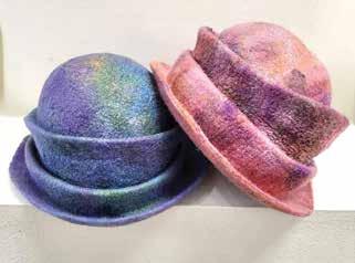 Lucy and Sharon have created artistic hats and scarves using a variety of techniques — weaving, felting, knitting and crochet. These unique